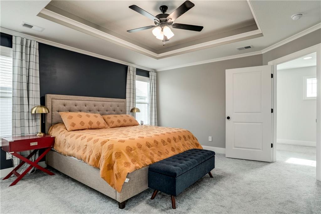 Welcome to your dream home featuring thoughtful upgrades and stylish finishes throughout! Step inside to beautiful hardwood flooring in the Entry, Breakfast Area, Kitchen, Dining/Office (with elegant French doors), and Great Room — with recently added hardwood stair landings for a timeless appeal. Light and privacy are enhanced with the 2-inch faux wood blinds. The heart of the home boasts a modern kitchen with striking graphite quartz countertops, upgraded enamel cabinetry, and seamless functionality. A convenient, built-in mud bench at the garage entry keeps everyday organization effortless. Retreat to the spa-like bath with a luxurious free-standing tub — a standout feature that elevates the master bath with the custom tile shower. Additional enhancements include a painted garage interior and a programmable smart thermostat for comfort and efficiency. Enjoy easy outdoor living with the new patio extension and hardscape improvements with a privacy wall. Large back yard and sprinkler system. This vibrant community offers exceptional amenities — including a stocked fishing lake, heated pool with extended seasonal use, playground, picnic shelter, fire pit area, and trails — perfect for fun, relaxation, and connection. Taxes and square footage are estimated.