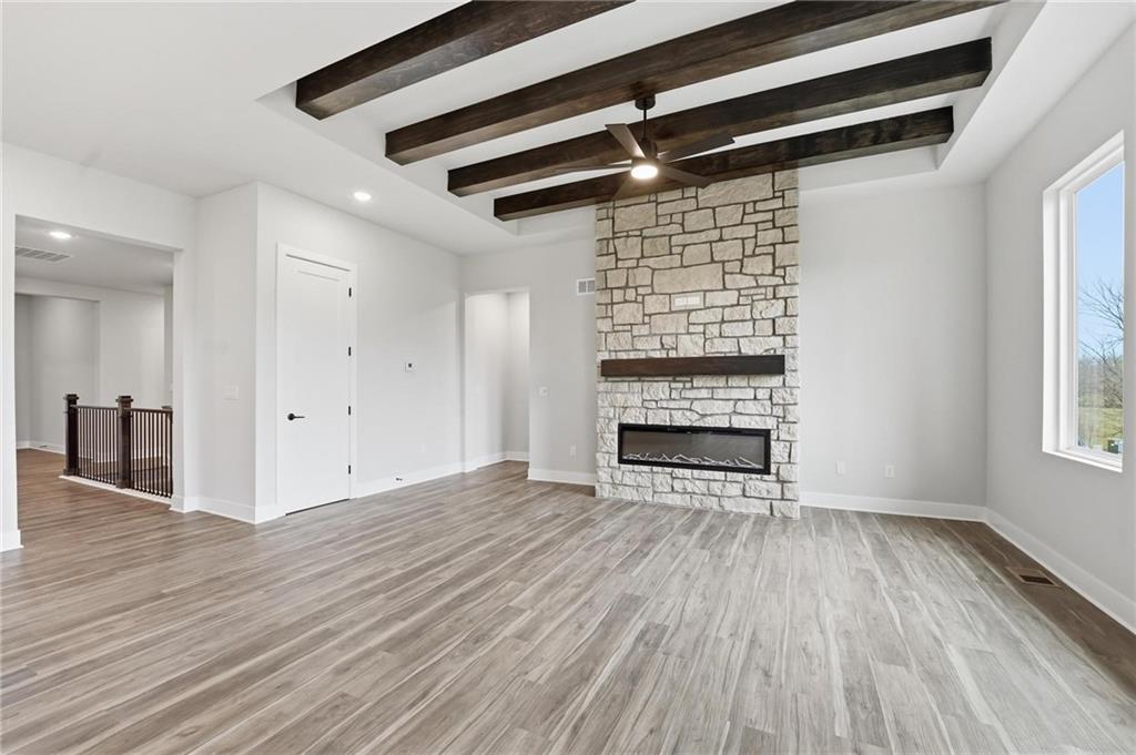 Welcome to the Gonzalez plan by Hakes Brothers Homes, showcasing the striking Modern Prairie elevation and offering 1,835 sq. ft. of thoughtfully designed living space on a desirable daylight basement lot. Step inside to find 8-ft doors throughout the main level, enhancing the open and airy feel of the home. The true gourmet kitchen is designed to impress with quartz countertops, custom cabinetry, stainless steel appliances, and an oversized island perfect for entertaining or everyday living. The spacious living room is warm and inviting, featuring a beautiful fireplace with mantle—an ideal focal point for relaxing evenings or gathering with friends and family. The open-concept layout allows natural light to flow throughout the main living areas, creating a seamless blend of comfort and style. The daylight basement provides abundant natural light and exciting potential for future living space. With modern finishes, thoughtful design, and elevated style throughout, the Gonzalez offers effortless living in the desirable Hidden Hills community.