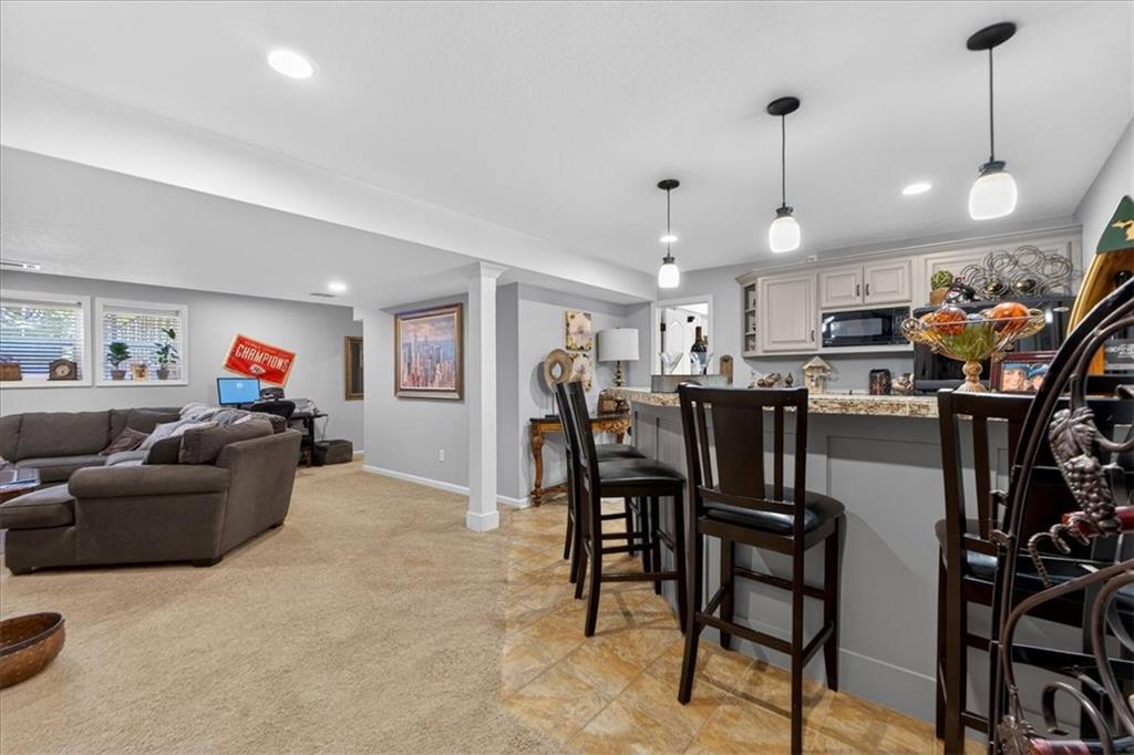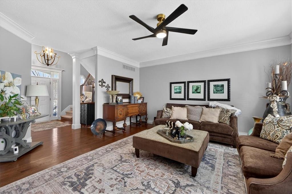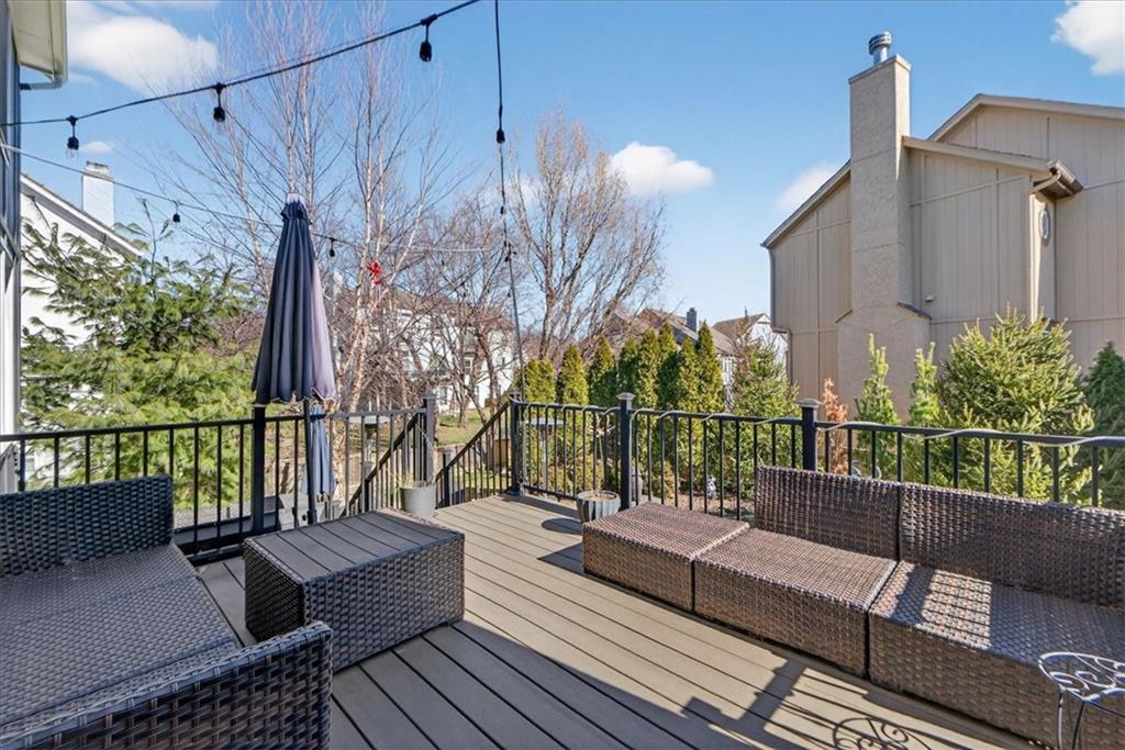 Welcome to this beautifully maintained 2-story home in the highly sought-after Wilshire Woods neighborhood within the Blue Valley School District. Situated on a spacious lot with mature trees and extensive landscaping, this home offers exceptional outdoor privacy rarely found in this price range. The main level features hardwood floors, a dramatic two-story entry, formal dining room, and multiple gathering spaces including a hearth room with fireplace and a light-filled living room. The updated kitchen serves as the heart of the home with quartzite countertops, soft-close cabinetry, tile backsplash, center island with seating, walk-in pantry, and stainless appliances. The adjoining breakfast area overlooks the backyard and opens directly to the deck and patio. Upstairs features a spacious primary suite with vaulted ceilings and sitting area along with a large ensuite bath offering double vanities, jetted tub, and separate shower. A rare custom dressing room addition provides exceptional storage and organization and includes its own HVAC mini-split for year-round comfort. A private guest suite and two additional bedrooms connected by a Jack-and-Jill bath complete the upper level. The finished daylight lower level offers a large rec room, wet bar with seating, full bath, and flexible space for a home gym, media area, or playroom. Enjoy outdoor living on the elevated deck or paver patio surrounded by mature trees and perennial gardens creating a peaceful and private setting. Located near Cottonwood Point Elementary, Oxford Middle School, Blue Valley Northwest High School, and blocks from Ascension Catholic School. Neighborhood amenities include a community pool and walking trails. Move-in ready with space, updates, and a hard-to-find private backyard setting in southern Overland Park.