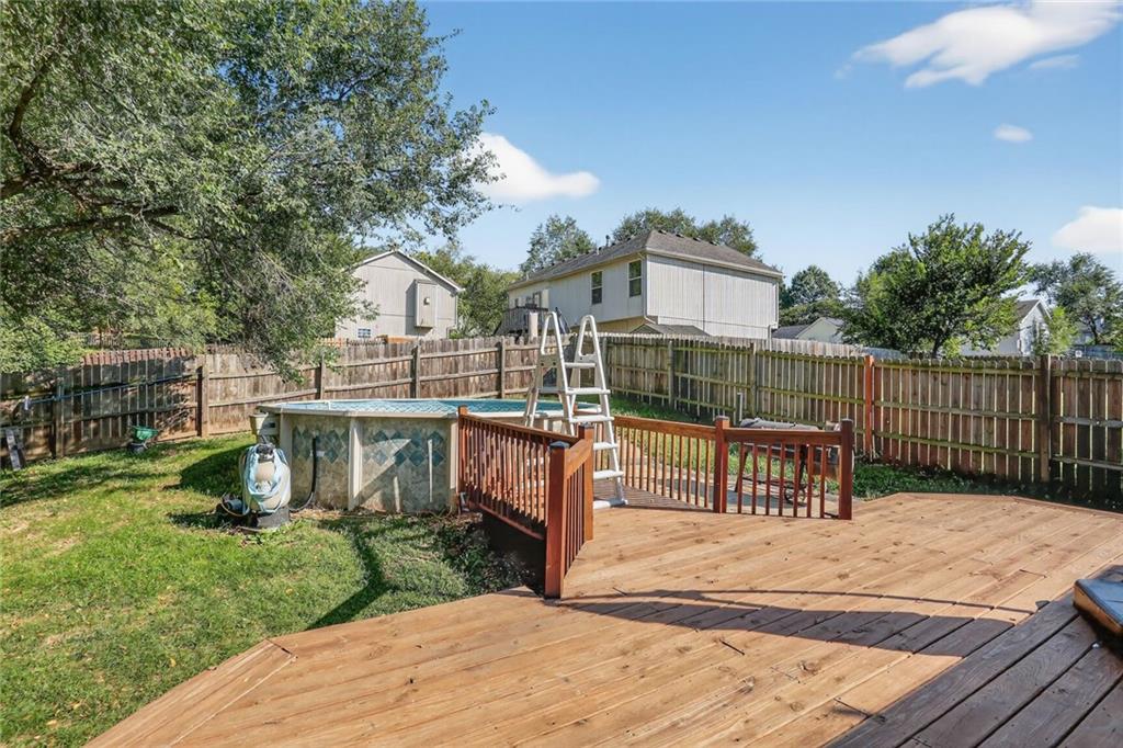 MOVE RIGHT IN! You’ll fall in love with this charming 3-bedroom (new carpet), 2-bath split-level that’s been meticulously cared for inside and out! Nestled next to green-space at the end of a quiet street, this home offers extra privacy and peaceful views. Enjoy your very own backyard oasis—complete with an above-ground pool, spacious 300 sq. ft. deck with boardwalk, Shed, and private fencing. Perfect for entertaining family and friends especially during the SUMMER while enjoying the above ground swimming pool! Inside, the kitchen and great room feel fresh and inviting with wood floors, fresh interior paint. A leaf guard system, and expanded 3rd-car driveway. Great location near World, Oceans of Fun, parks, shopping, and restaurants+++++++++++++++++++EVERYTHING YOU NEED JUST MINUTES AWAY.