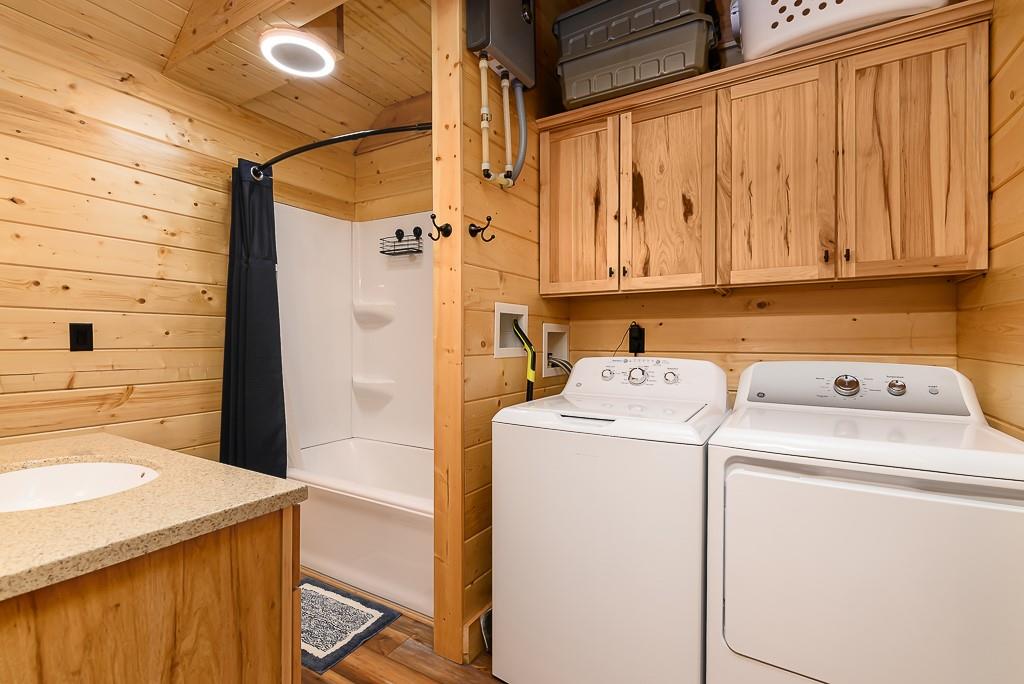 BEAUTIFUL 2-BED 1-BATH LAKE HOME ON DOUBLE LOT WITH BIG GARAGE FOR YOUR BOAT OR RV! This move-in ready getaway comes fully furnished and includes all appliances, so you can start enjoying the lake right away. Inside, you’ll love the hardwood floors and rustic wood walls, ceilings, and beams in the vaulted spaces, plus a cozy open living area with a loft bedroom that looks out over the main room. The covered front porch is a great spot to relax after a day on the water. Outside, there’s a 16x28 carport and a 28x40 metal garage that’s perfect for storing your boat, RV, or lake toys. The gated community offers 2 pools, putt-putt course and golf course and clubhouse. Plus it is a pivate lake, no registration for fishing or boating! The home sits on a double lot with second-tier lake access and is just a short walk to the water, giving you the lake lifestyle without the lakefront price. This is an easy, low-stress lake place ready for weekend fun or full-time living.