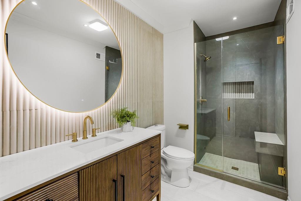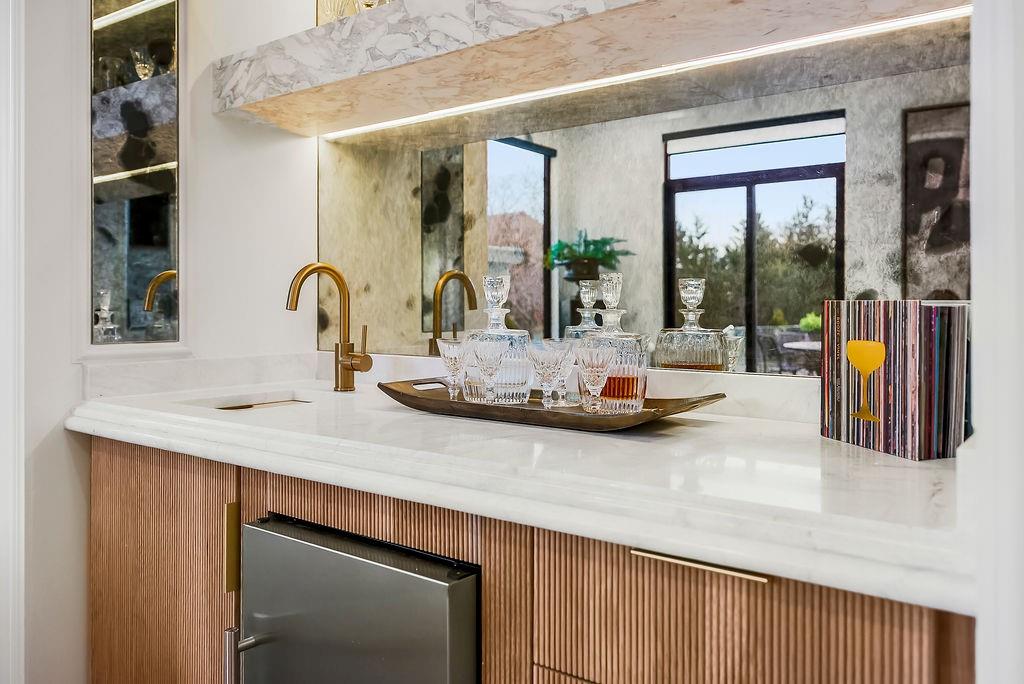 This masterfully rebuilt 1.5-story estate in prestigious Hallbrook delivers elevated design, architectural presence, & effortless luxury. From the inviting courtyard & new concrete circular drive to the meticulously curated interiors, this residence commands attention. Custom new ironwork, new inset cabinetry, new intricate millwork, new statement designer lighting, & new French oak herringbone hardwood floors handcrafted by local contractor, Acme Floor, set a tone of unmistakable quality. New Pella windows & dramatic bi-fold doors flood the home with natural light. Custom crown molding and trimwork flow throughout the home, layering every room w/ depth & dimension. The brand new kitchen is outfitted with new luxury Viking appliances & flows effortlessly into expansive living and dining spaces. The main-level primary suite is a private sanctuary, featuring a new spa-caliber bath wrapped in imported honed Greek marble, new travertine walls & heated floors, a new soaking tub, new dual vanities, a new custom walk-in closet, and a new $8,000 Kohler shower system w/ 3/8 in. glass and custom tile. Upstairs, each secondary bedroom offers its own en-suite bath w/ designer-selected finishes, providing privacy and comfort for all. The finished lower level rivals a private club, complete w/ a Capital Grille inspired bar, 75-in. television, fitness room, rec lounge, & dedicated billiards area. 2 brand new HVAC systems with a built-in scent system that mimics the 1 Hotel, new plumbing systems, 2 new hot water tanks, R-69 insulation, LED lighting, new tile roof, & an integrated multi-zone audio/AV system elevates both form & function of this estate. Outdoors, professionally landscaped grounds frame a spacious Trex deck with glass railings, offering a seamless extension of the home’s interiors through the 8-ft bi-fold doors. This home has been completely reconceived, crafted for the buyer who expects distinction, demands quality, and appreciates a home that truly stands apart.