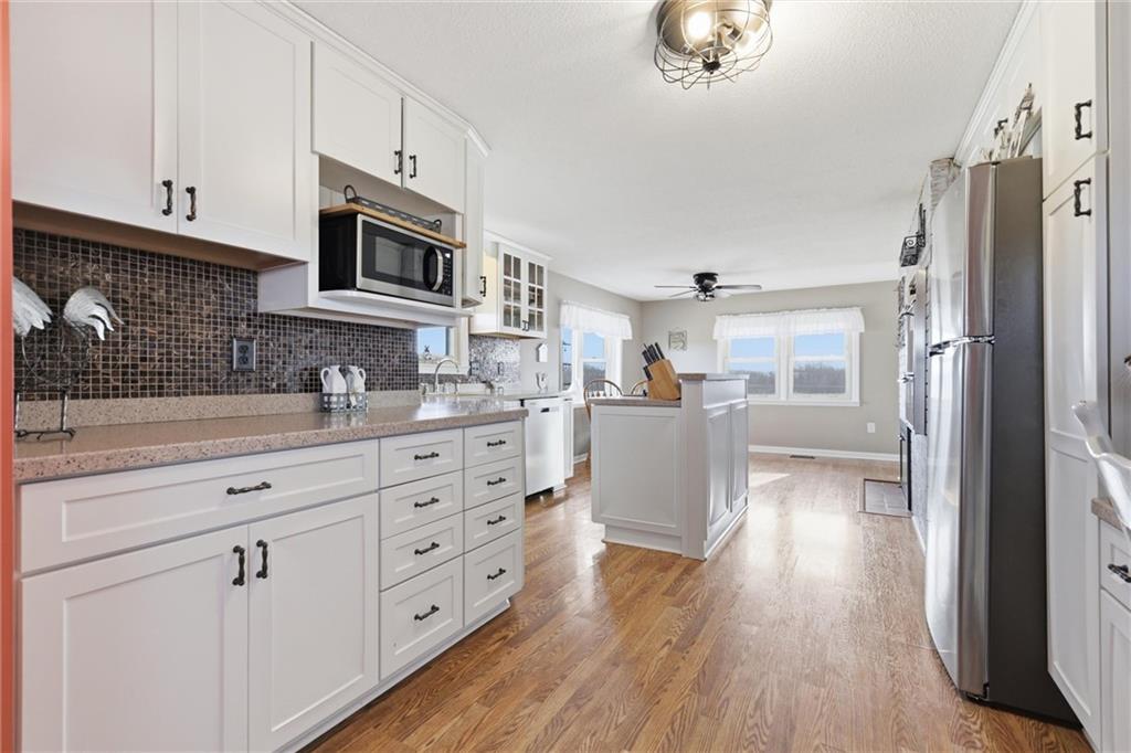 Welcome Home to this Beautiful Ranch Home on 10.55 acres in the highly sought after Lawson School District. Small town Charm!! Energy Efficiency Home with Geothermal HVAC system and Solar Panels! Enjoy cooking is this Beautiful Kitchen with lots of cabinets, center island with stove top, lots of counter space, built in desk area. Step into the Dining room with Bay window & see through Fireplace. Living room with see through Fireplace, walk out to your double deck. This home features 2 Bedrooms & Full Bath on main level, with nonconforming 3rd Bedroom & 1/2 Bath in Basement. Plenty of room in Basement to make a family room. One car Garage with Basement entry. 200 amp Electrical. Additional Highlights include 2 Car Garage/Workshop with concrete floors & electricity! Step on down to the next building 40 x 50 with electricity, can be horse barn with dirt floors. This 10.55 acres has a couple of entry ways one off of Baxter road to your driveway & House, Buildings, then also off of MM for the acreage. Your own Private Retreat, Perfect for entertaining! Conveniently located with easy access to Highway 35, Highway 92 & Highway 69, this home delivers peaceful country living without sacrificing accessibility! Plenty of room for your Garden & Chickens! Book your showing today for this Country Charm in small town living! Close to Watkins Mills!