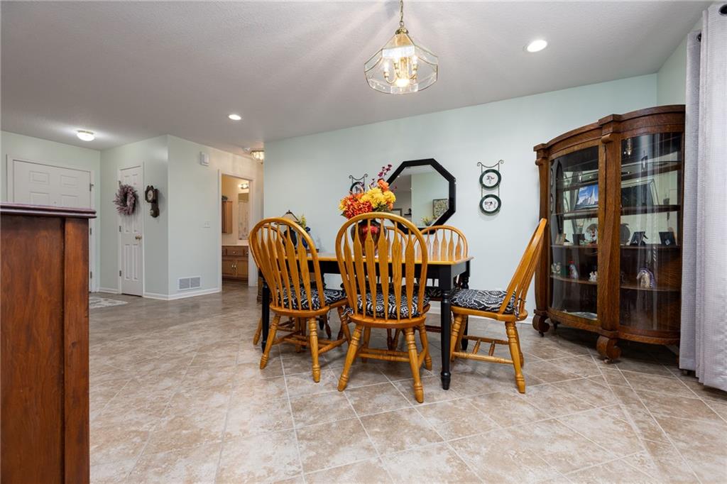Lovely true ranch on a corner lot with in-ground sprinkler system. Retractable awning over patio creates additional relaxing or entertaining space. Updated HVAC just 2 years old. Vinyl siding for low maintenance!!! South facing driveway to two car attached garage is a bonus for snow melt during the winter months. Tiled main floor throughout is easy to maintain and durable. Large dining area and gathering/great room. Two full bathrooms. Master bedroom is spacious and double box-vault ceiling is painted with accent color to show off this lovely detail. Get ready to show and get ready to write. This "better than new" will not last long!!!