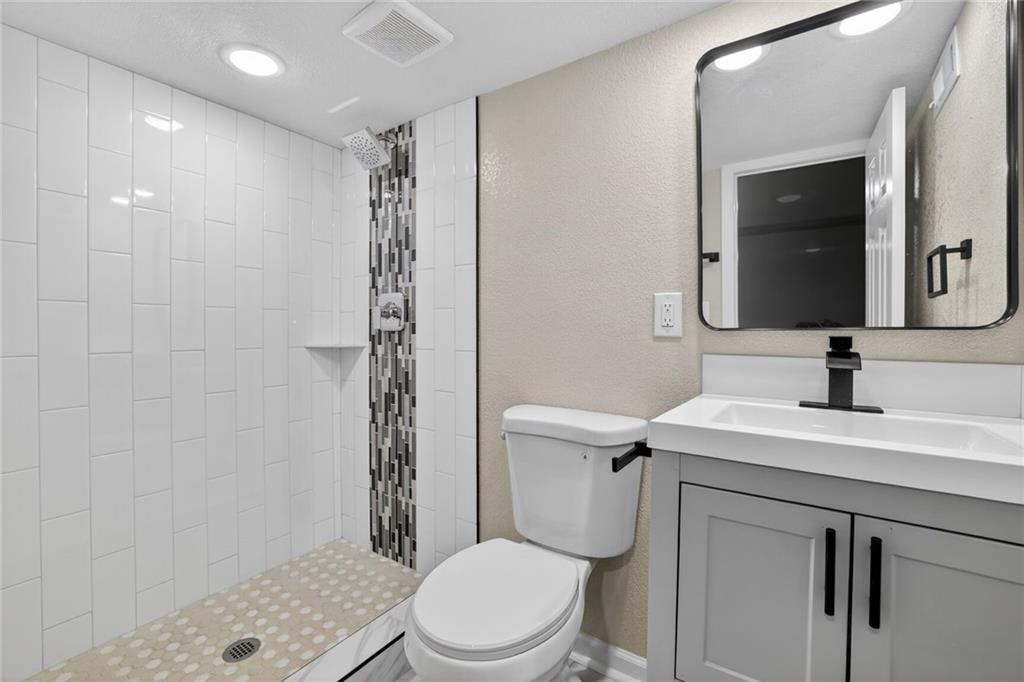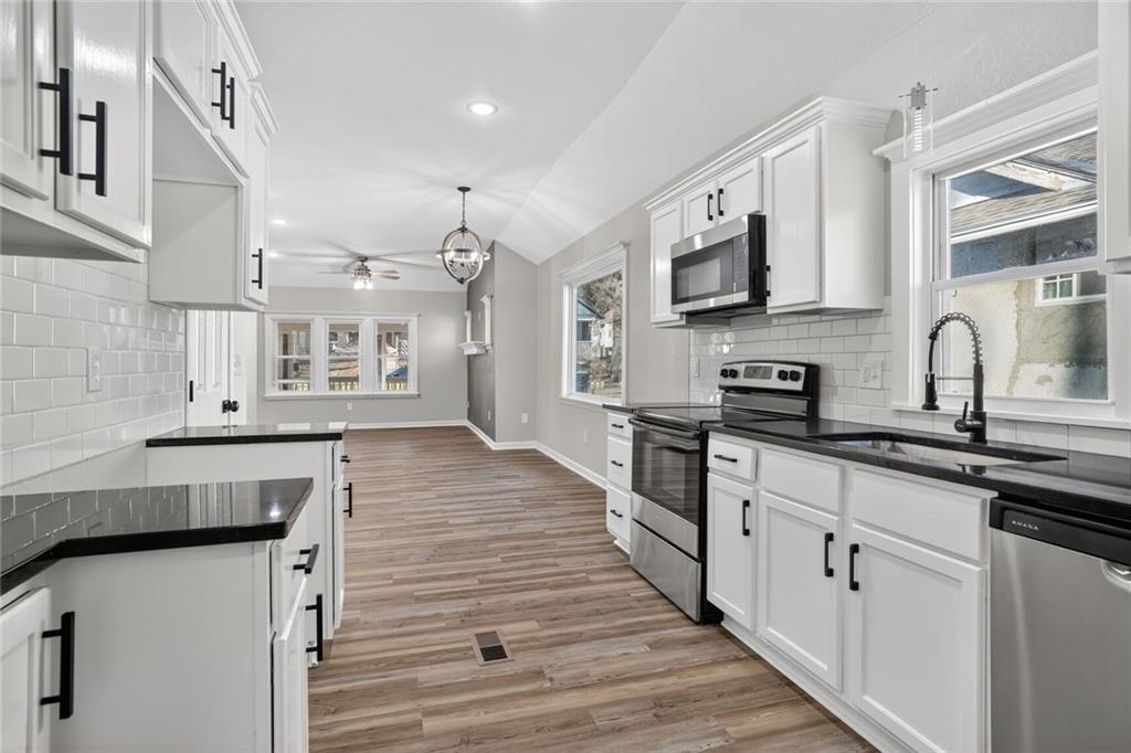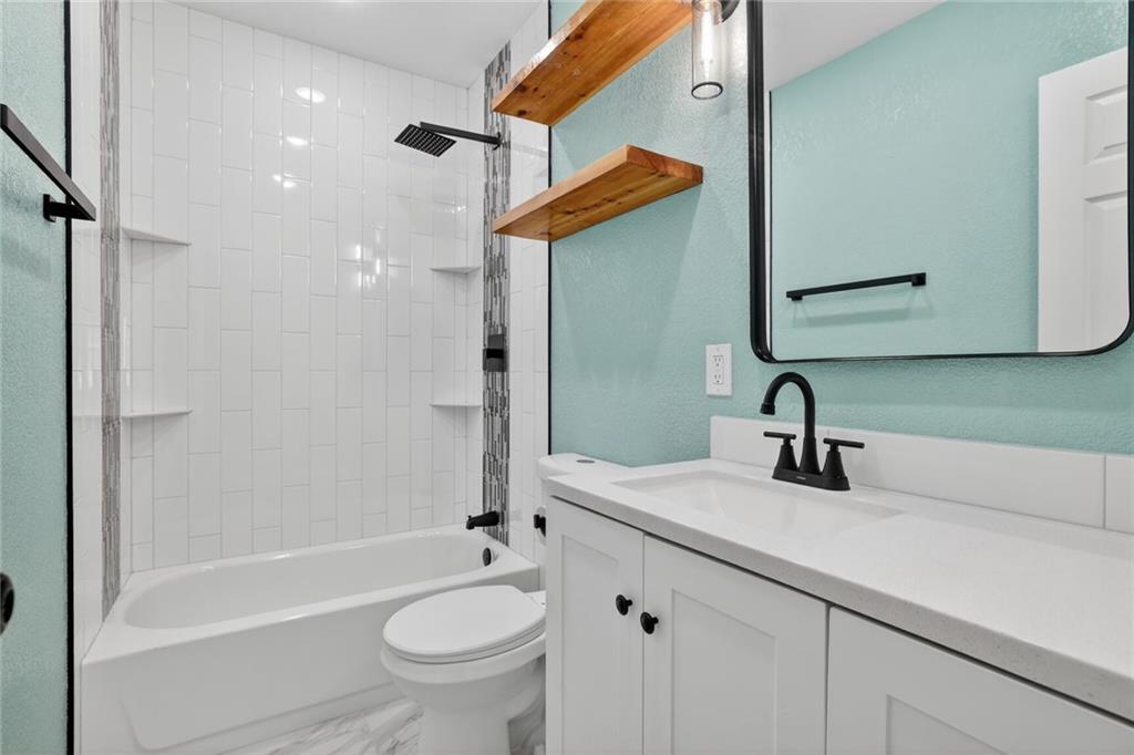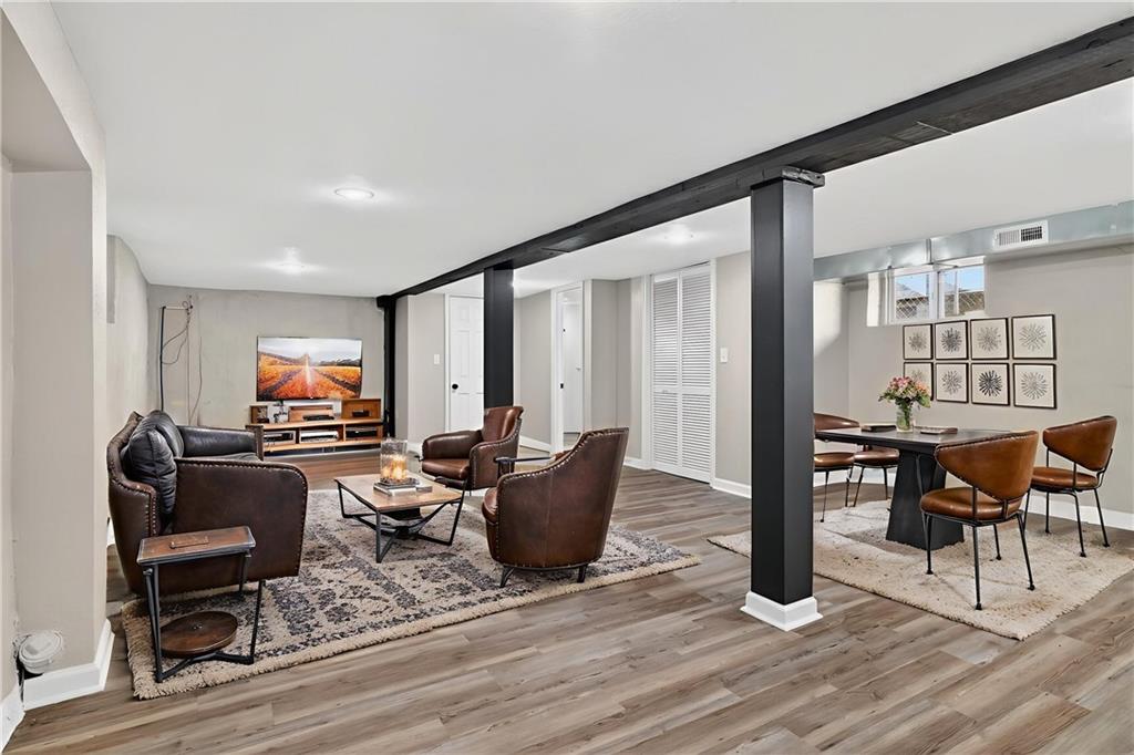 Completely rebuilt from the inside out, this fully renovated home delivers modern finishes and brand-new major systems for true peace of mind. This is not a cosmetic update — the HVAC, roof, windows, electrical, and plumbing are all brand new. The big-ticket items have been done. The main level features new luxury flooring, fresh neutral paint, and a bright open layout. The kitchen is fully updated with white shaker cabinets, sleek black hardware, stainless steel appliances, subway tile backsplash, and modern lighting. One bedroom includes its own private half bath — a rare and convenient feature. The beautifully finished basement adds valuable living space with a closet plus a full bathroom, making it perfect for an en suite bedroo, second living area, guest suite, office, or flex space. Outside, enjoy a fully fenced yard, off-street parking, and private rear access. With brand-new systems, designer finishes, and a finished lower level, this home offers style, function, and long-term value — all in one package.