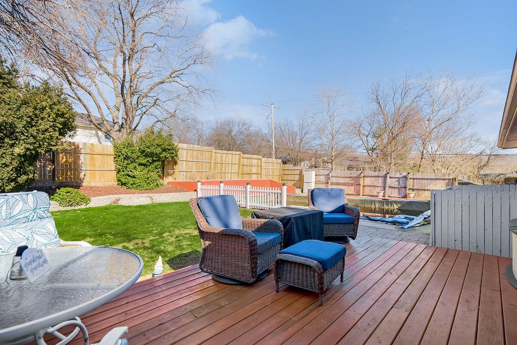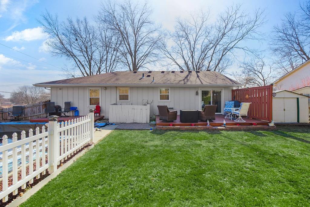 Immaculate and meticulously maintained, this 4-bedroom, 3-bathroom home is a true standout, offering a masterfully redesigned open-concept layout, custom updates/finishes, AND an in-ground swimming pool - just in time for summer! The main level welcomes you with stunning bamboo wood flooring, leading into a spacious living room and a remodeled kitchen complete with granite countertops, an island/bar, and a charming breakfast and dining area. This level also hosts the primary master suite with a private full bath, along with two additional bedrooms and a beautifully updated guest bathroom. The living space extends into the lower level, which was remodeled in 2024 and features modern LVP flooring, a cozy family room centered around a fireplace, a fourth non-conforming bedroom, and a full third bathroom. While the interior is impressive, the backyard is a showstopper; step out onto the deck to find a 16x32 in-ground pool (depth 3' to 8') nestled within a large, private, fenced-in yard with a dedicated storage shed. With major updates including a new HVAC (2019), newer carpet (2022), and a new pool liner (2025), this home offers total peace of mind. Perfectly located off 20th St, you are within walking distance to Henry Elementary, 20 minutes to KC Legends, and just five minutes from Ft. Leavenworth. Pre-inspected and repairs complete!
