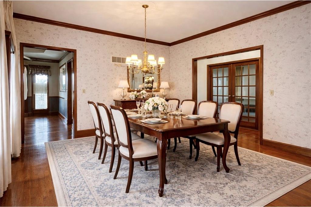 Welcome home to this meticulously maintained and beautifully designed property offering space, comfort, and privacy. Featuring 4 bedrooms & 3 1/2 baths, this home is perfect for both everyday living and entertaining. The primary suite boasts a spa-like bath with a jetted tub and separate walk-in shower. Enjoy gatherings in the formal dining room or cook with ease in the large kitchen with abundant storage and rich wood floors. Main-level laundry adds everyday convenience. The finished basement is an entertainer’s dream, complete with a bar, full bathroom, guest bedroom, large cedar closet, and generous storage space. Cozy up to one of two fireplaces or enjoy the extra perks of a working intercom system throughout the home. Step outside to the extra-large covered back porch with shades and two ceiling fans—ideal for relaxing while overlooking a wide-open backyard that backs to open land and mature trees, offering peace, privacy, & serenity. Additional highlights include two attached main-level garages, a bonus rear garage, new windows, and a furnace just three years old. This home has been lovingly cared for and truly shows pride of ownership—don’t miss this rare opportunity!