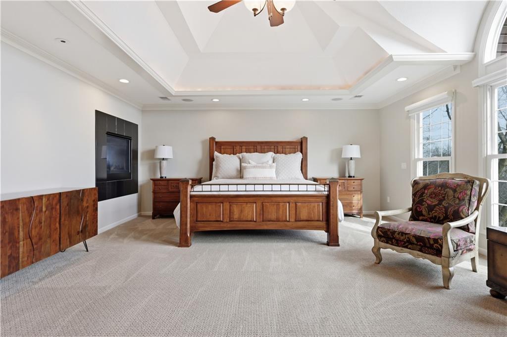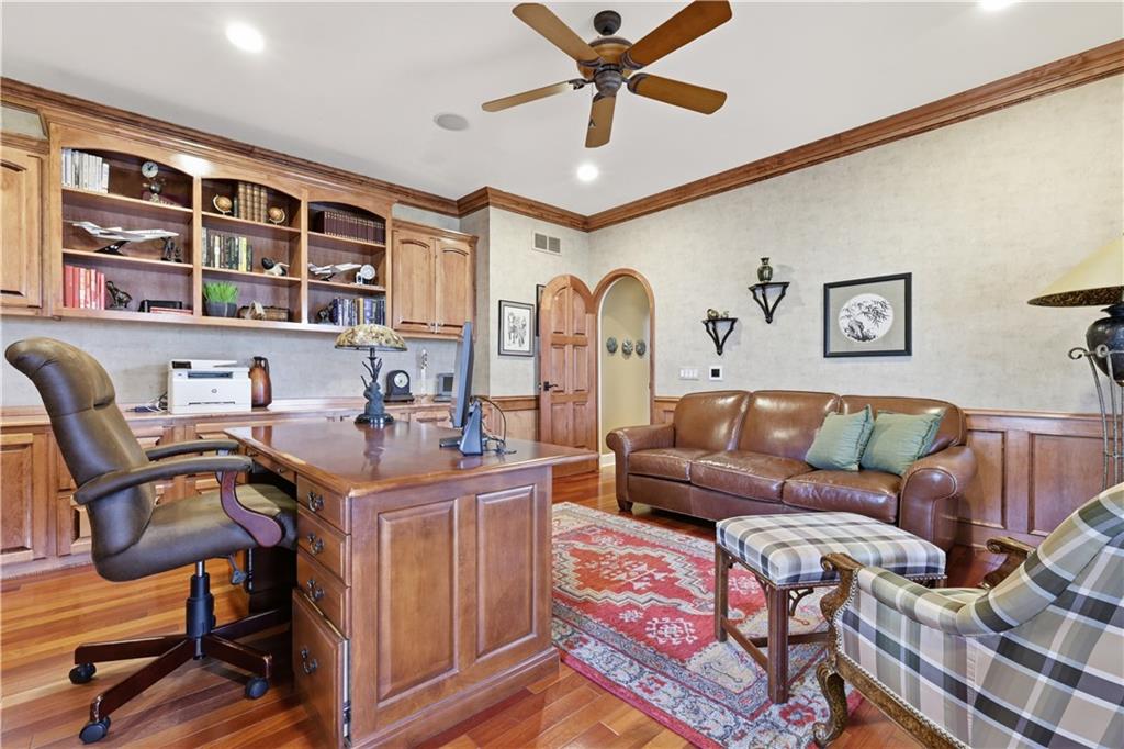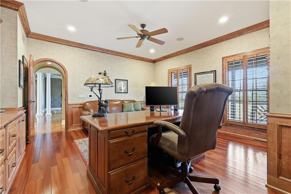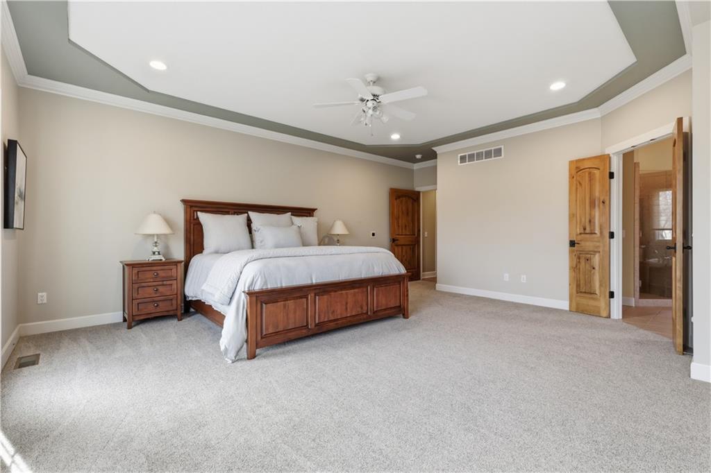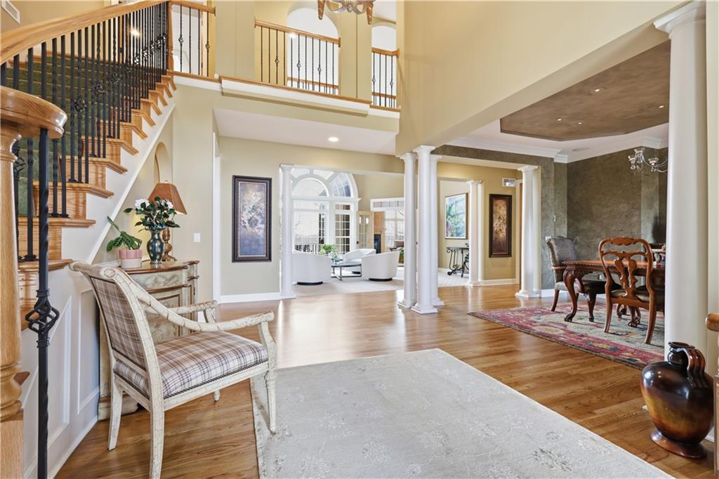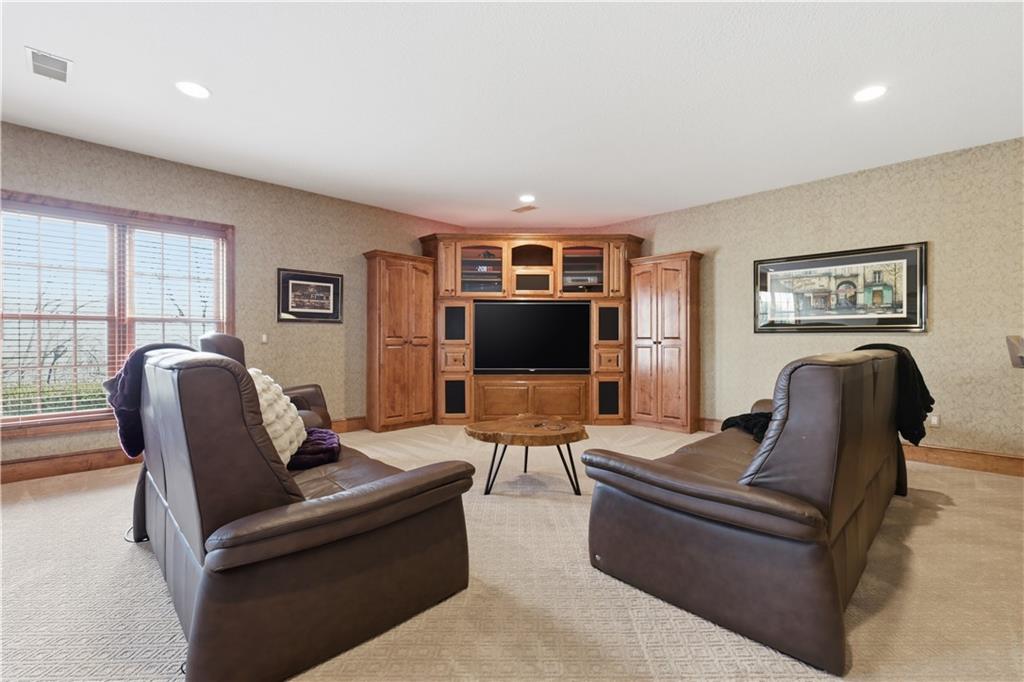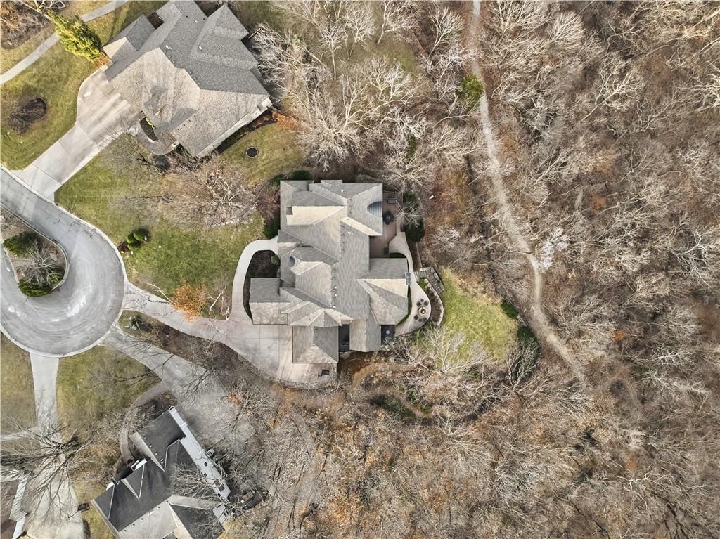 Stunning 8,355 SF estate at the end of a quiet cul-de-sac in highly sought-after Winterset Woods. Situated on a private .84-acre lot backing to maintained wooded green space and the community?s ?100 Acre Wood,? this home offers exceptional privacy with direct trail access to the Rock Island Trail. Main level features newly refinished hardwood floors, formal dining and living rooms, a spacious family room, gorgeous sunroom, walk-in pantry, and private office with side entry front porch access. The updated kitchen showcases natural maple cabinetry, quartzite counters, new Wolff double ovens & induction range. All updated appliances. This home offers two master suites. The main-floor master suite includes a spacious bath with jacuzzi tub and private deck access. The 2nd level master suite has cathedral ceiling framing tree top views. Bath has heated tiled floor and a Jacuzzi River Bath. Closets feature California Closet design. The remaining 2nd level offers a loft and 2 suites with private baths, highlighted by Alder hardwood doors and Renewal by Andersen windows. The walkout lower level is built for entertaining with a large rec room, gas fireplace, full bar, billiards area, guest suite with full bath, second laundry, custom wine cellar (1,000+ bottle capacity), additional rec space, and nearly 1,400 SF of storage. A storm shelter/vault is located beneath the front porch. Outdoor living includes multiple decks, screened porch, covered patio with finished dry ceiling and shiplap detail, gas fire pit, ornamental iron fencing, and additional dry storage below the south deck. The 4-car garage (998 SF) provides ample space. Roof replaced in 2020 with copper detailing. Perfect location with easy proximity to I-470. Just minutes from Lowenstein Park, The Streets of West Pryor, and Summit Woods.