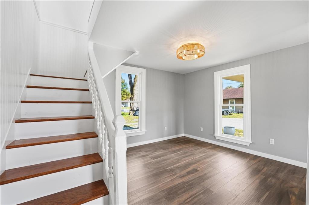 Welcome home to this beautifully updated 2-bedroom, 1-bath gem in the highly sought-after Kearney School District! Sitting on a 0.26-acre lot, this charming home perfectly blends modern updates with small-town charm. Step inside to a bright and welcoming living room that flows seamlessly into the dining area—ideal for entertaining or cozy family dinners. The gorgeous kitchen features stylish tile backsplash, a farmhouse sink, custom cabinetry, a pantry, and a convenient attached mudroom with access to the driveway. The main floor also includes the laundry room and bathroom. Upstairs, you’ll find two comfortable bedrooms offering peaceful retreats. Outside, enjoy a country feel with plenty of space for a garden, yet just minutes from the highway for easy commuting and access to nearby amenities. This move-in-ready home combines comfort, style, and convenience—all in one perfect package! Be sure to also check out MLS #2602293 at 610 Water Street, located right next door—an incredible opportunity to purchase two neighboring properties. Buy one and make the other an investment property, start your rental portfolio, or create a perfect setup for multigenerational living or a mother-in-law quarters arrangement.