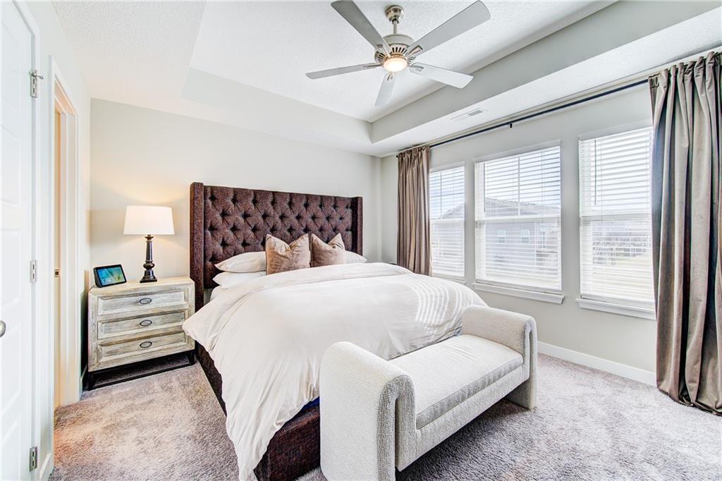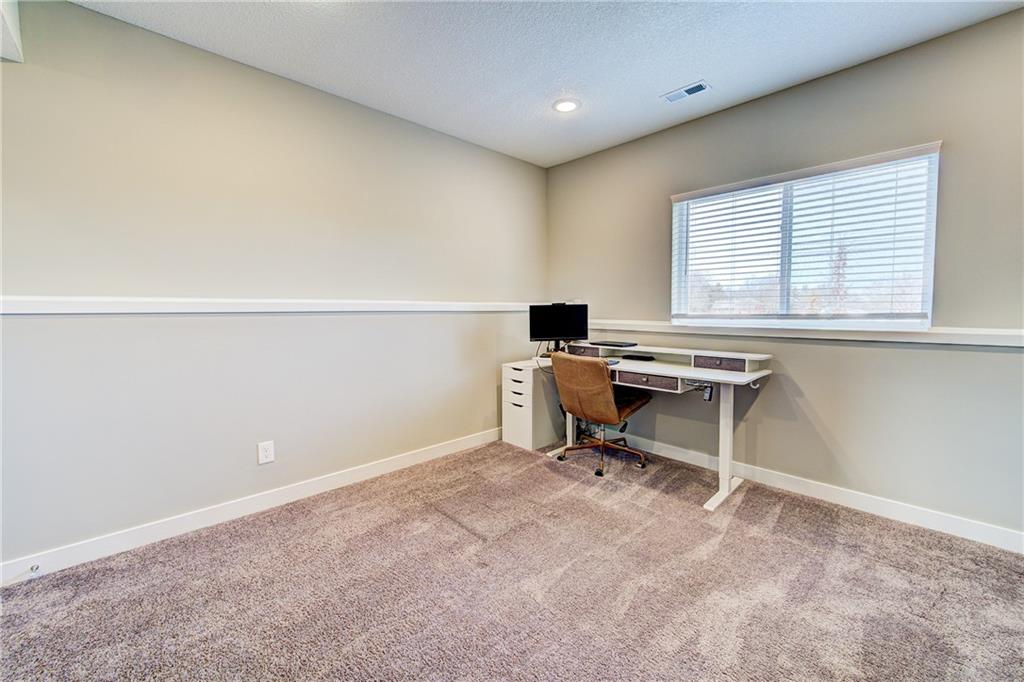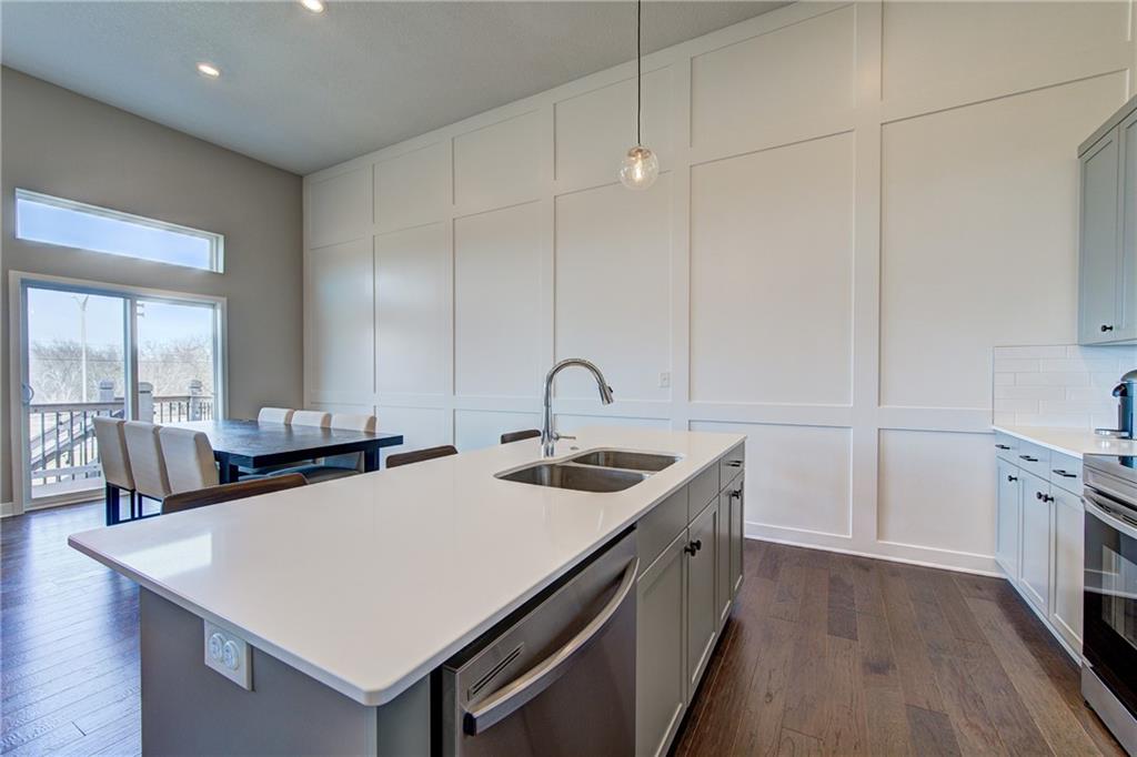 Well-maintained, like new 3 bedroom, 3 full bath end-unit with a 2-car garage in the sought after Osage community. Desirable end location offers added privacy with no neighbors behind or to the side. Welcoming, spacious entry leads to an open-concept living, dining, & kitchen area with soaring ceilings & excellent natural light. Living room highlights a striking fireplace, while the kitchen & dining space feature a craftsman-style accent wall. Kitchen offers a large island, ample cabinetry, walk-in pantry, & stainless steel appliances. Upstairs with primary suite featuring walk-in closet & double vanity. Additional bedroom with full bath access, & convenient laundry. Daylight lower level includes a rec room, third bedroom, & full bath, plus generous storage in the utility closet and under the stairs. Deck with privacy wall overlooks peaceful farmland & provides plenty of common ground. Excellent location close to highways, shopping, parks, & dining. Located within the highly desirable Lee’s Summit School District.