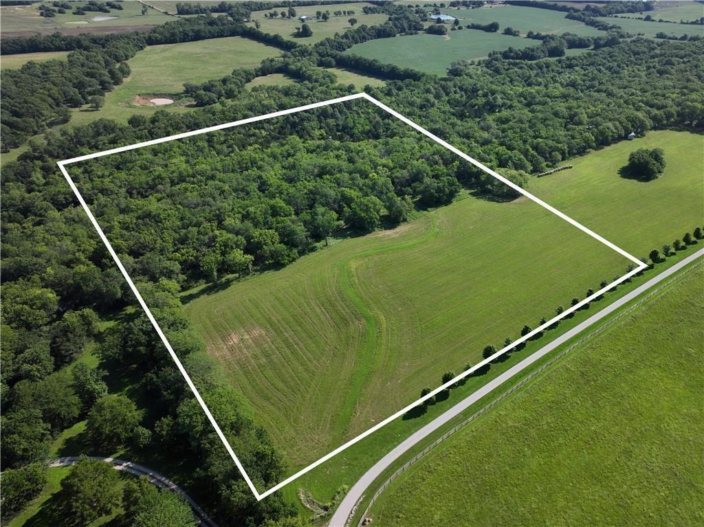 Welcome to Ridgeview Farms, a premier gated farm community in southern Cass County, just 45 minutes from Kansas City—where peaceful country living meets modern convenience. This offering includes the west ½ of Tract B (20 acres) plus the opportunity to build the thoughtfully designed “Tate Plan” by T&H Quality Homes , creating a private estate setting on one of the highest elevations in Cass County. The 20-acre tract features metered water, electricity, and high-speed fiber internet. The front offers open, level ground ideal for a homesite, while the back transitions into wooded terrain with trails, elevation changes, and abundant wildlife. Deer and turkey are common. Build a pond, enjoy campfires, and take in expansive night skies with clear views of the stars. The proposed home offers approximately 2,950 sq. ft. on the main level, plus a 610 sq. ft. upper level with loft and additional bedroom, along with a full unfinished basement for future expansion. The modern farmhouse design features metal roofing accents, 10-foot plate heights, and vaulted ceilings. The main level includes an open living room with fireplace, spacious kitchen with oversized island and walk-in pantry, dining area, and a private primary suite with soaking tub, tile shower, and generous closet space. A secondary main-level bedroom and bath add flexibility. Upstairs, a loft overlooks the living area and leads to an additional bedroom and bath. Outdoor living is central with a large covered patio (approx. 952 sq. ft.) and optional outdoor kitchen, ideal for enjoying the rolling acreage. A substantial shop/garage with multiple overhead doors provides space for vehicles, equipment, or hobbies. Home is not yet constructed. Pricing reflects land plus build of this proposed plan (subject to final specs and builder contract), allowing buyers to personalize finishes while securing an exceptional 20-acre estate.