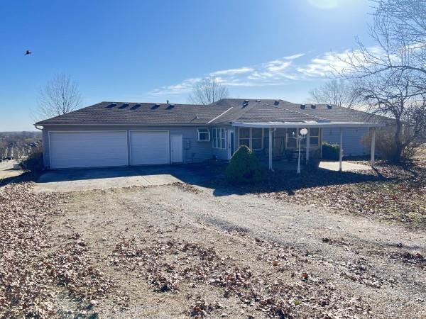 Enjoy peaceful country living in Grain Valley! Situated on 3 acres, this 3-bedroom, 2.5-bath home offers the perfect blend of privacy and convenience. The inside features comfortable living spaces filled with natural light, including a sunroom perfect for relaxing, along with a functional true ranch layout and a laundry room conveniently located on the main floor. Step outside to enjoy wide open views from the back patio and plenty of room for outdoor activities, gardening, or future additions. The property also features an impressive 50x60 shop with three garage doors, providing ample space for storage, hobbies, or equipment. Located just minutes from I-70, shopping, dining, and local schools, this property delivers the tranquility of rural living with easy access to city amenities. Don’t miss this opportunity to own a beautiful piece of the countryside!