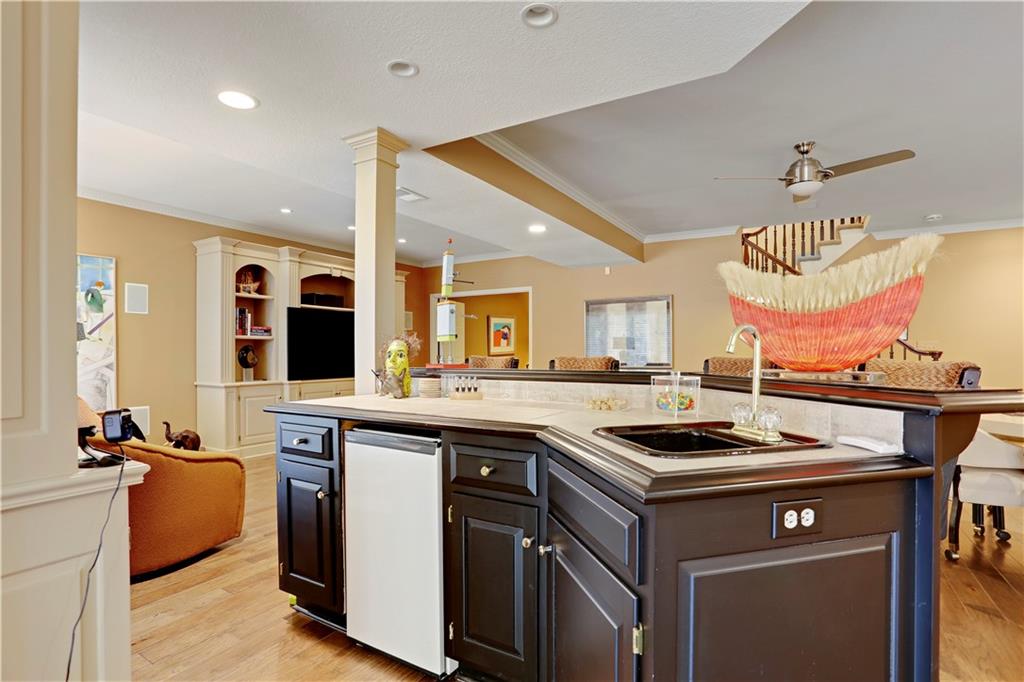 Nestled within the exclusive, gated, and maintenance-provided Edgewood community, this exquisite villa is the epitome of luxury living. As a former model home, it boasts every imaginable upgrade, along with a meticulous full remodel that radiates sophistication and pride of ownership. Step inside to discover 4 spacious bedrooms, 4 beautifully appointed baths, and an impressive 2-car garage. The gourmet kitchen is a chef's dream, featuring top-of-the-line stainless steel appliances, double ovens, a sleek mirrored backsplash, and a brand-new large pantry. The centerpiece is a stylish center island w solid surface tops. The great room wows with soaring 14-foot ceilings and an abundance of natural light, enhanced by stunning new light fixtures that add a contemporary touch and modern fireplace remodel. Retreat to the primary suite, a true sanctuary with its spa-inspired, fully redesigned bathroom—offering a tranquil escape at the end of the day and includes a relaxing whirlpool tub .The walkout lower level is equally impressive, showcasing two additional bedrooms, a handsome custom bar, and a spacious recreation room that opens onto a covered patio. It's the perfect space for entertaining or unwinding. The home also features new windows, custom built ins, gleaming hardwood floors on the main level, and luxury vinyl plank flooring below, ensuring every detail is both stylish and functional. Custom blinds and plantation shutters included in the TV room. The charming, covered porch with new ceiling fan is also a rare find. Lush, lovely upgraded landscaping surrounds this residence plus newly added flagstone walk & porch. This villa is more than a home—it's a lifestyle, offering elegance, comfort, and convenience in one of the most sought-after communities. Don't miss your opportunity to experience this masterpiece firsthand! It checks ALL the boxes .Just A Stones Throw to The Shops and Fine Restaurants at Town Center Along With Easy Highway Access.