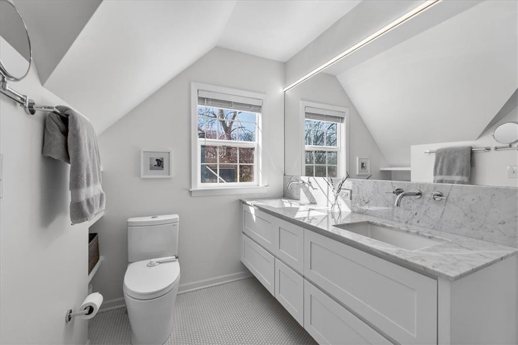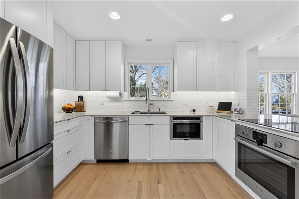 In a coveted pocket of Prairie Village, this residence has been reimagined from the studs up with discipline, design integrity, and a clear point of view. Every surface, system, and finish reflects a renovation executed with intention rather than trend, resulting in a home that feels both modern and enduring. Natural light pours across beautiful hardwood floors, setting the tone for a main level designed for connection. The kitchen unfolds seamlessly into the living and dining spaces, where clean lines and thoughtful proportions create effortless flow. A tailored mudroom adds everyday function, while the screened-in porch extends the living experience outdoors, offering a refined transition to the patio and deck beyond. Upstairs, the primary suite rises beneath vaulted ceilings, delivering volume and serenity in equal measure. The bath evokes a boutique hotel sensibility, complemented by a generous walk-in closet designed for order and ease. Two additional bedrooms and a well-appointed hall bath complete the level, along with a charming, light-filled home office that feels quietly tucked away yet beautifully integrated. The lower level introduces a finished recreation room ideal for gathering, media, or play, alongside substantial storage that keeps daily life streamlined. Outside, a fully fenced yard frames expansive patio and deck spaces made for entertaining under the Kansas sky. A storage shed, pristine garage, and standout curb appeal round out a property that balances beauty with practicality. This is renovation done right. Thoughtful. Cohesive. Completely move-in ready.