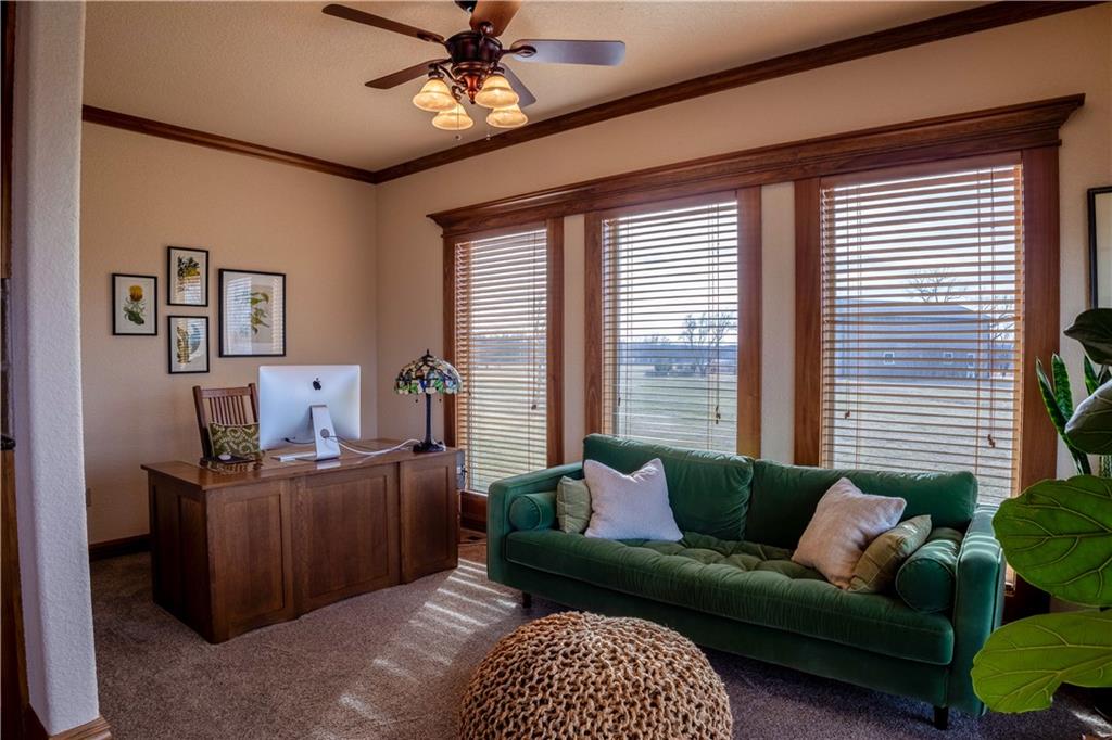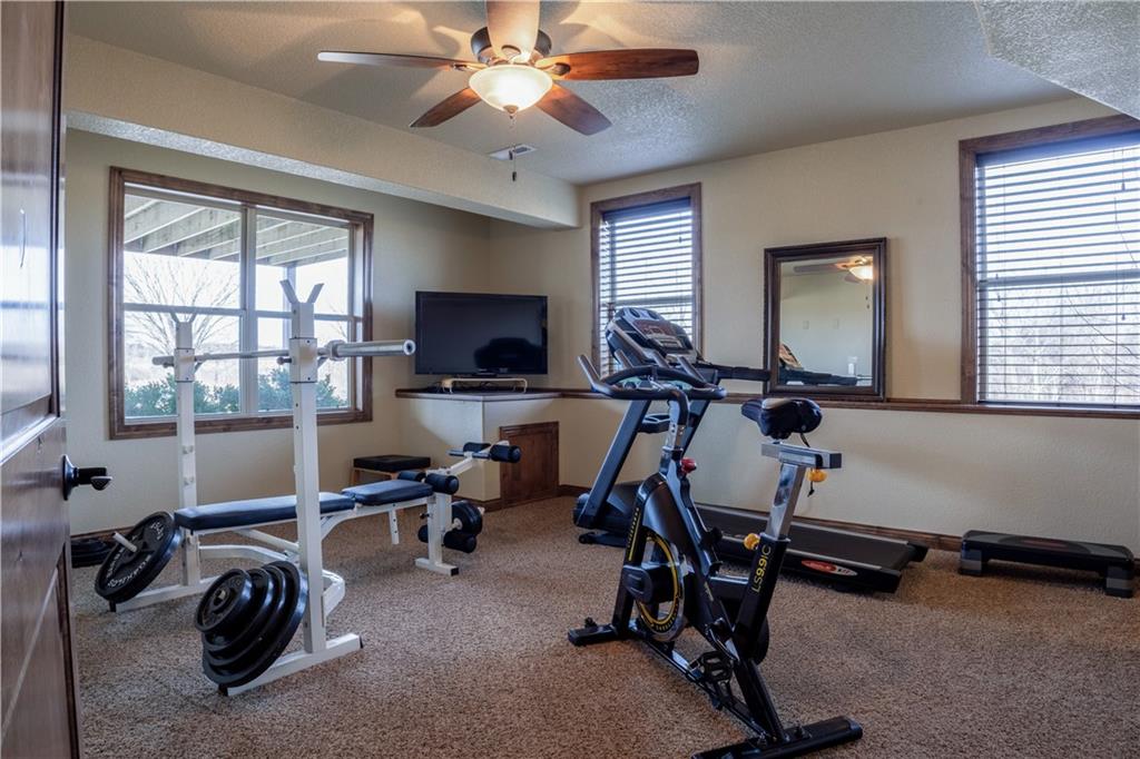 Stunning one-of-a-kind waterfront estate on approximately 10 private acres just minutes from Lawrence, Baldwin and Kansas City! Backing to the Wakarusa Watershed lake, this home offers exceptional views, privacy, and abundant wildlife on blacktop roads. The main level features an open floor plan with a deluxe kitchen, oversized island, office, and luxurious primary suite. Upstairs are four spacious bedrooms, each with bathroom access and walk-in closets. Bonus storage space in the easily accessible attic. The finished lower level is designed for entertaining with a family room, wet bar, and seamless access to the outdoor living area, custom gunite pool and spa. Offering over 5,500 sq ft of living space with 7 bedrooms and 5 bathrooms, the property also includes a four-car attached garage and an impressive 3300+ square foot heated shop with concrete floors, oversized doors, 220V electric, and RV storage. A rare opportunity for luxury lakefront living with space to work, play and unwind!