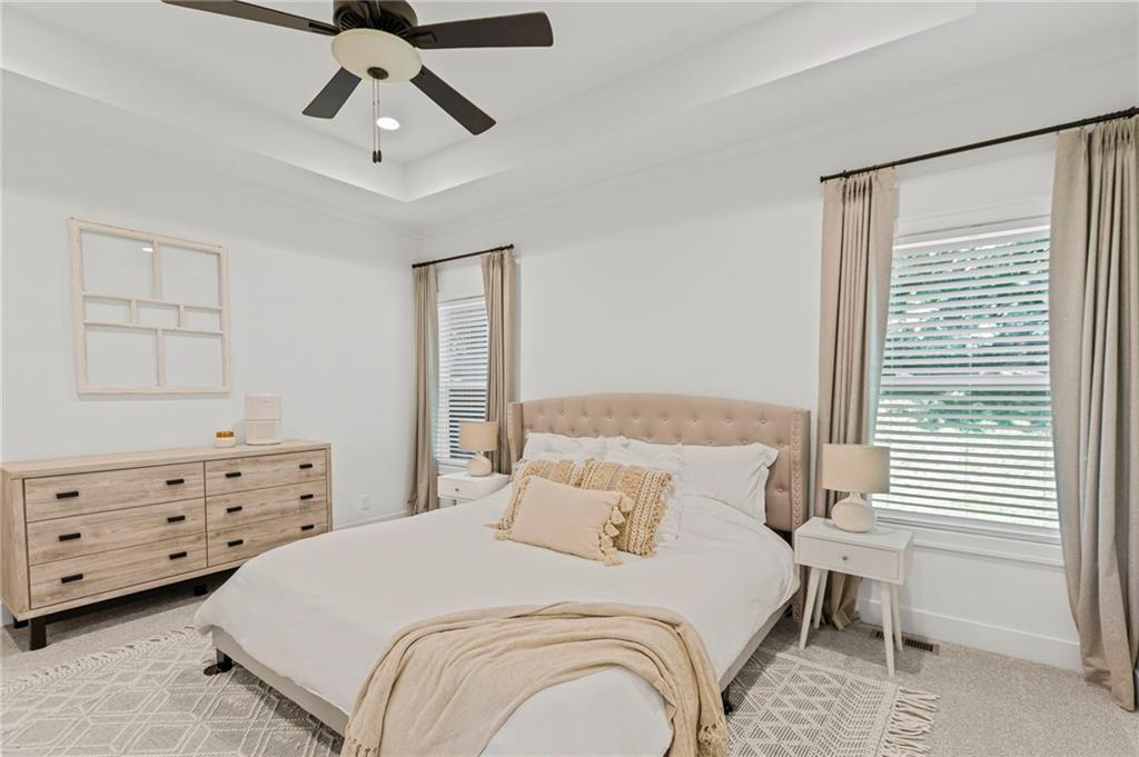 This home is a stunner and like brand new! Situated on a treed lot that backs to greenspace. Located near highway access and shopping. Seller is leaving most of the home furnishings as a bonus to the lucky new owner! Step into this spacious and open floor plan with gorgeous great room that boasts a stunning fireplace and two-story ceiling. The kitchen is a chefs dream with tons of cabinets, stainless steel appliances, and quartz countertops. Gorgeous primary bedroom with a tiled bathroom and a spacious walk-in closet. Secondary bedrooms have tons of closet space. Finished rec room with wet bar and plenty of space for entertaining. Screened in porch and a wonderful view of the trees! Neighborhood amenities include community pool and play area. This home is priced to sell and won't last long!