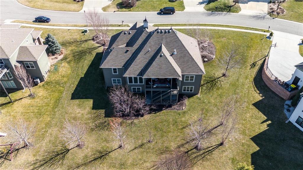 MAGNIFICENT REVERSE 1.5 ON A CUL-DE-SAC IN COLTON LAKES SOUTH IN THE AWARD-WINNING BLUE VALLEY SCHOOL DISTRICT! This stunning home perfectly blends warm, inviting contrasts with clean, modern design, all showcased in a desirable open floor plan ideal for everyday living and entertaining. Light-filled Great Room is anchored by a dramatic floor-to-ceiling stacked stone fireplace with custom built-ins—creating a striking focal point and the perfect place to gather. Chef’s kitchen is sure to impress with quartz countertops, a generous center eat-in island, walk-in pantry and stainless steel appliances, including a gas cooktop, built-in oven and microwave. An adjacent breakfast nook and formal dining room offer versatile spaces for hosting guests or enjoying cozy nights at home. Retreat to the luxurious primary suite featuring direct access to the covered deck—for your morning coffee or evening unwind. Spa-inspired en-suite boasts a double vanity, whirlpool tub, separate walk-in shower and a spacious walk-in closet with convenient in-suite laundry. Second bedroom, full bath and mudroom complete the thoughtfully designed main level. Finished walk-out lower level expands your living space with a large family room, wet bar, three additional bedrooms, two full baths and a second laundry area—ideal for guests or multi-generational living. Professionally designed landscaping creates a serene, private outdoor retreat. Enjoy time on the deck or patio, both overlooking the extra-wide, spacious lot and tree-filled greenspace. Unbeatable location just minutes from Heritage Park, the Overland Park Arboretum, Blue Hawk's shopping and dining and easy highway access. WELCOME HOME!
