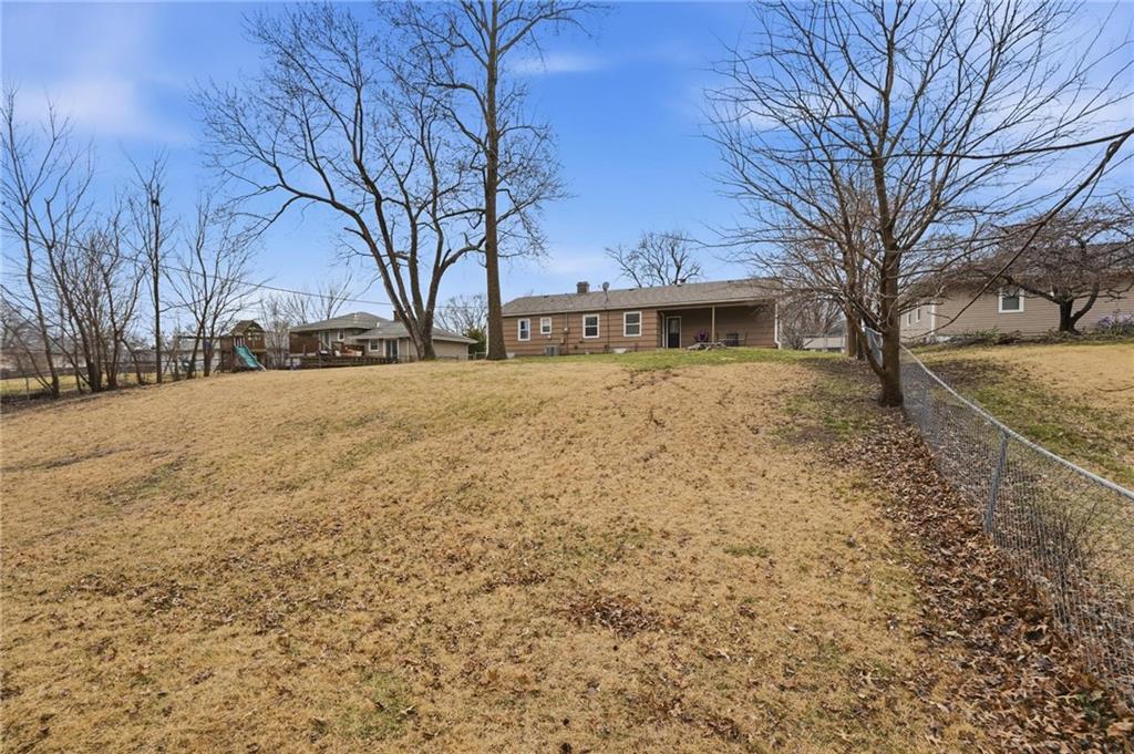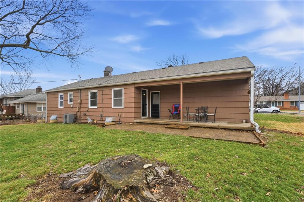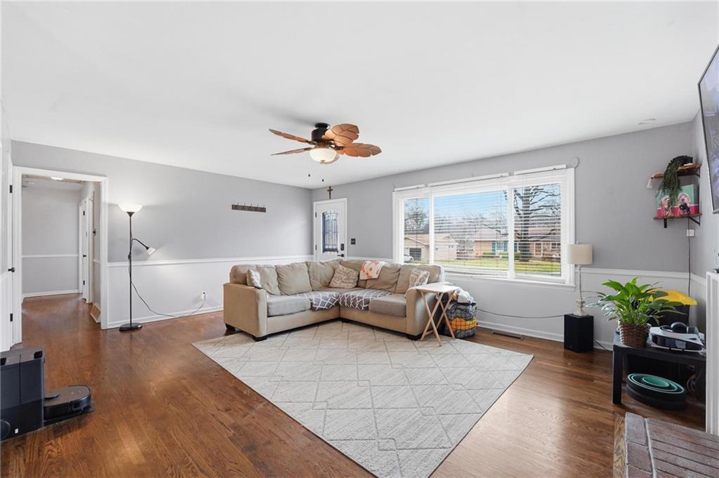 Warm and welcoming 3-bedroom ranch with 2 full baths, spacious 2-car garage. A convenient door from garage opens to a large, level, fenced backyard, featuring a partially covered patio area, bricked around the edges and perfect for quiet mornings as the sun rises, evening gatherings without the heat of the sun, or simply relaxing outdoors. A separate back door leads into the home. Inside, the original 1956 hardwood floors add timeless character and mid-century charm throughout. You'll find a comfortable, spacious living room, a dedicated dining area and an updated kitchen with brand new appliances and painted cabinets The washer and dryer stay, adding to your convenience. The three bedrooms, one a primary with full bath, complete the main level in this charming home. The lower level offers over 500 additional finished square feet of living space, including a welcoming family room and a non-conforming fourth bedroom, perfect for guests, a home office or a hobby space. All upstairs windows have been replaced recently, adding natural light and efficiency. Owner also added new railing to the front entrance.