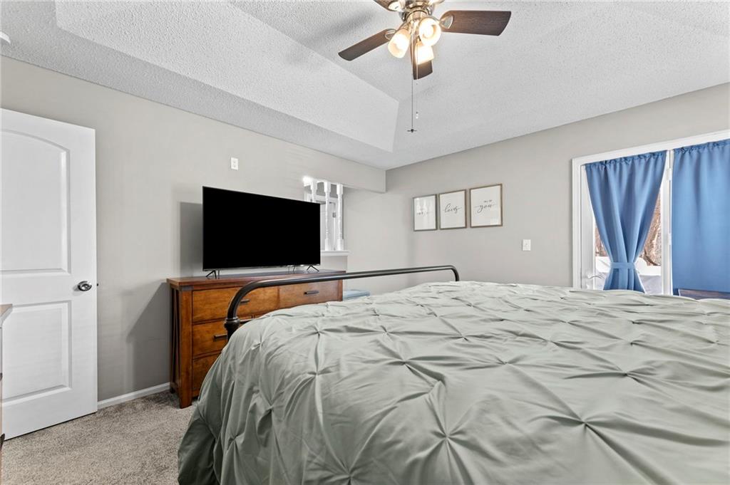 One of the cutest homes in Vista Del Verde with so many great features! This home is updated in coveted black and white new exterior paint with curb appeal that pops! Come inside to a welcoming front nook to read a book or set up as the dogs favorite sun bathing spot. Enjoy the open dining/living room with a fireplace that sets the room drawing your eye to a contrasting ceiling. The kitchen is ready to host all of your cooking with granite countertops and stainless steel applicances that overlooks a breakfast nook with a bay window displaying a newly painted entertainment deck with storage below. There are also several interior storage areas including a converted bedroom closet, that can be converted back to a bedroom. Newer plush carpet throughout, luxury vinyl plank floors, large hall bath, downstairs rec room with wet-bar and walk-out, third full downstairs bathroom with separate laundry area, large deep two car garage, and covered back patio area are just a taste of what this home has to offer. Lastly the amazing location with great shopping, Lee's Summit schools, parks and highway access nearby. Schedule your showing today before it is gone!