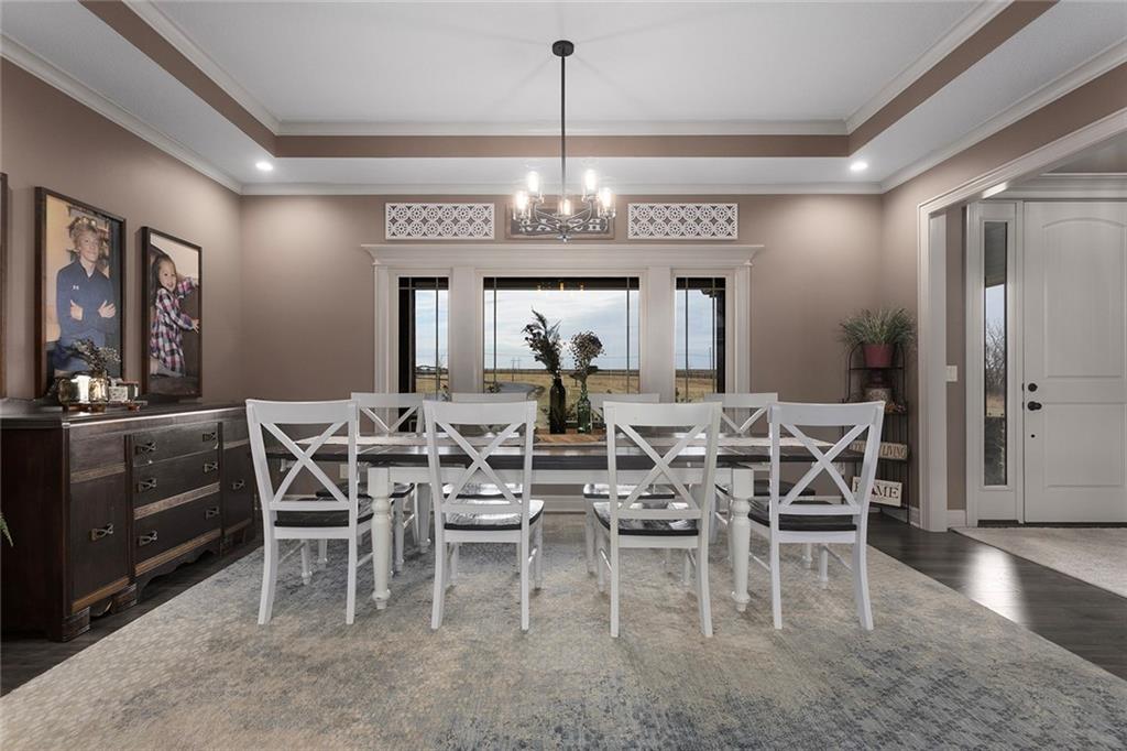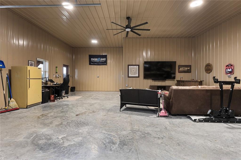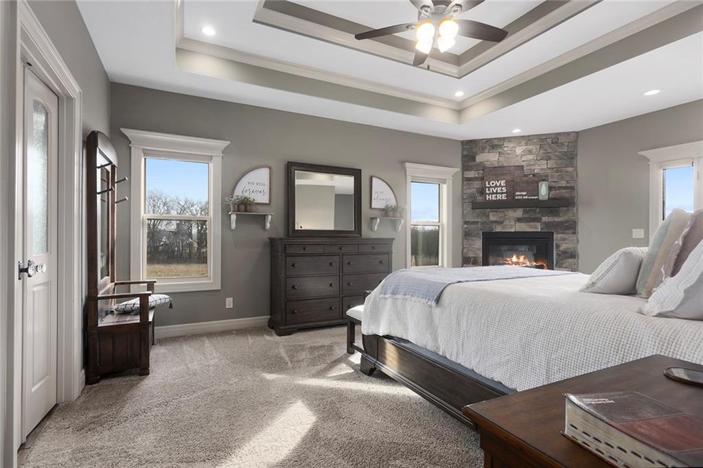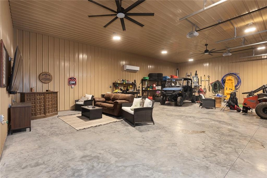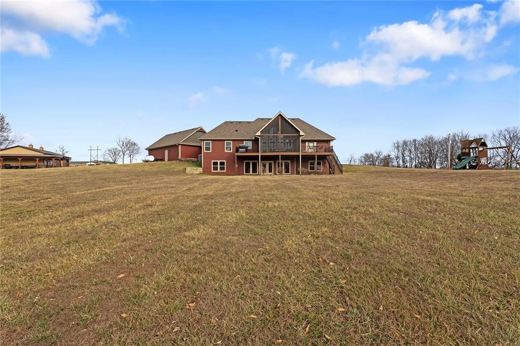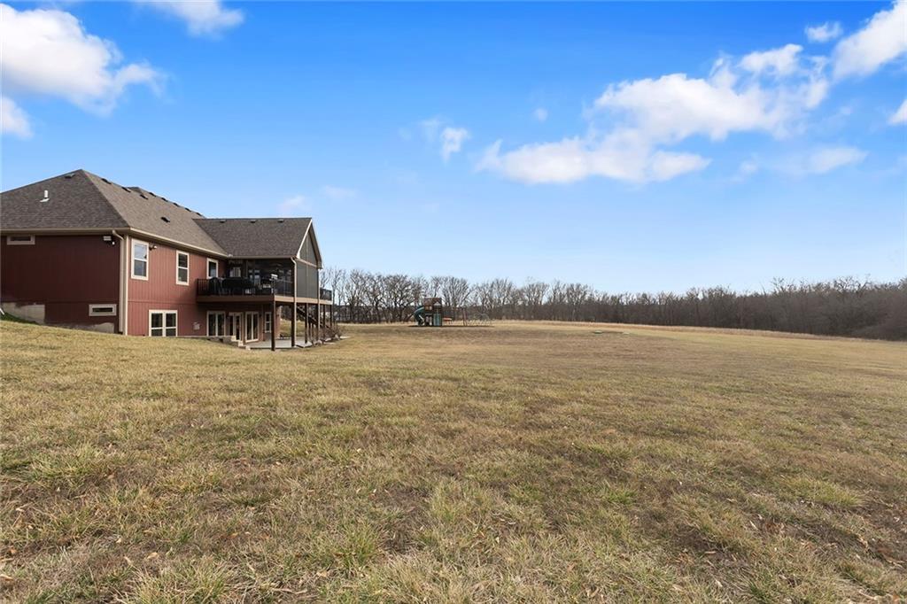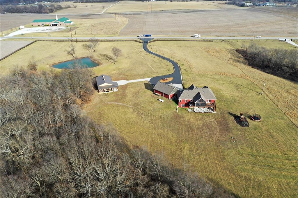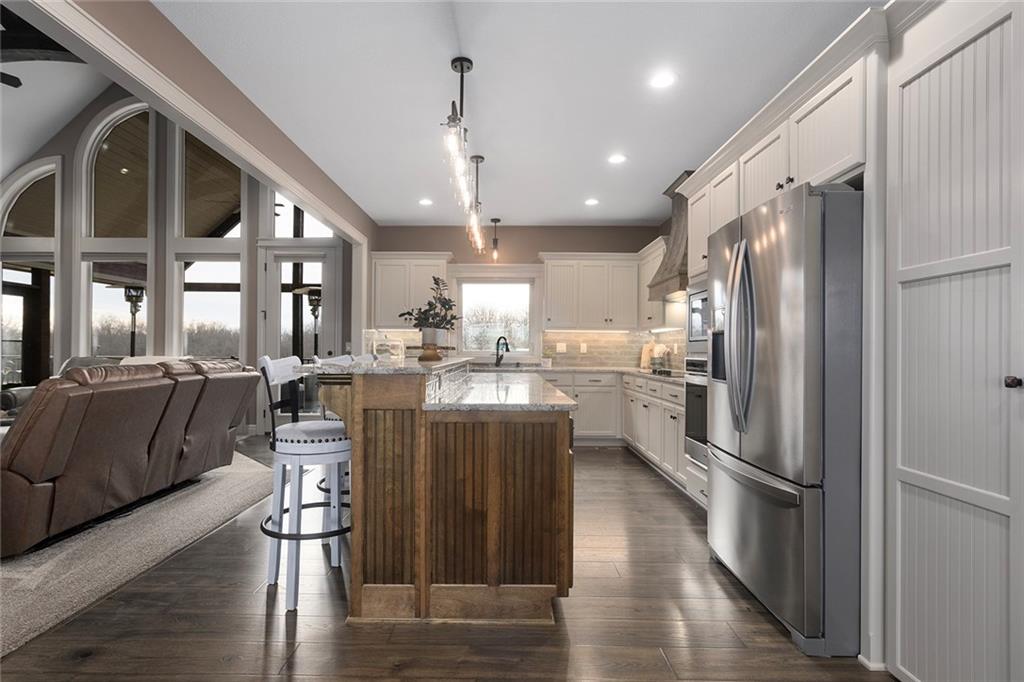 Welcome to Murricane Ranch — a private, gated estate where luxury meets the land. A winding paved drive lined with brilliant Fire Maples creates a breathtaking approach, setting the tone for nearly 25 pristine acres framed by classic Kentucky horse fencing and highlighted by a fully stocked pond. Designed to embrace the natural beauty and uniqueness of the property, this custom-built reverse 1.5-story captures sweeping treed views and unforgettable sunsets from its screened-in covered deck. Inside, the open-concept layout is anchored by a true chef’s kitchen featuring custom cabinet detailing and an amazing walk-in pantry built for both serious cooking and seamless organization. The kitchen flows effortlessly into the main living areas, creating a warm and inviting space ideal for everyday living & entertaining. A thoughtfully designed main-floor pet/mud room adds convenience and function. The private owner’s retreat is a sanctuary of its own, complete with heated floors and a spa-quality shower that elevates daily living. Guest rooms are intentionally positioned for privacy, while the full walkout lower level offers two additional bedrooms, a spacious game room, wet bar, and dedicated media area. Quality construction is evident throughout, including zoned high-efficiency HVAC, engineered laminated floor joists, and a reinforced storm room for peace of mind. The absolutely massive heated 3 car garage (with over 1100 sq ft) accommodates even the largest vehicles with ease to maneuver and provides the option to finish a private apartment above. A 1,500-square-foot heated and cooled outbuilding with office space, bathroom, and an impressive man cave expands the lifestyle possibilities even further. Though privately tucked away, Murricane Ranch is just minutes to I-70 & approximately 20 minutes to Blue Springs—offering convenient access without sacrificing seclusion. This is more than a home; it is a purposefully crafted retreat where land, luxury, & lifestyle converge.