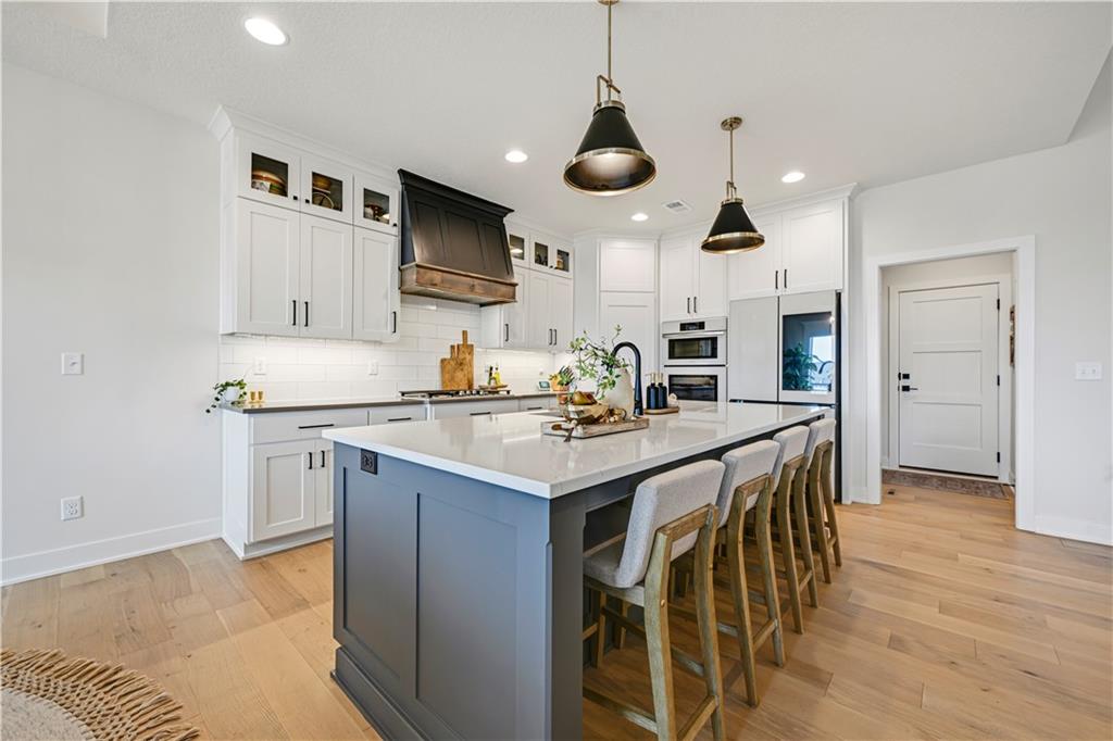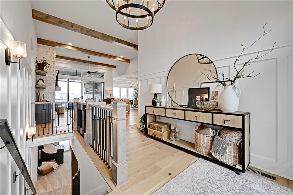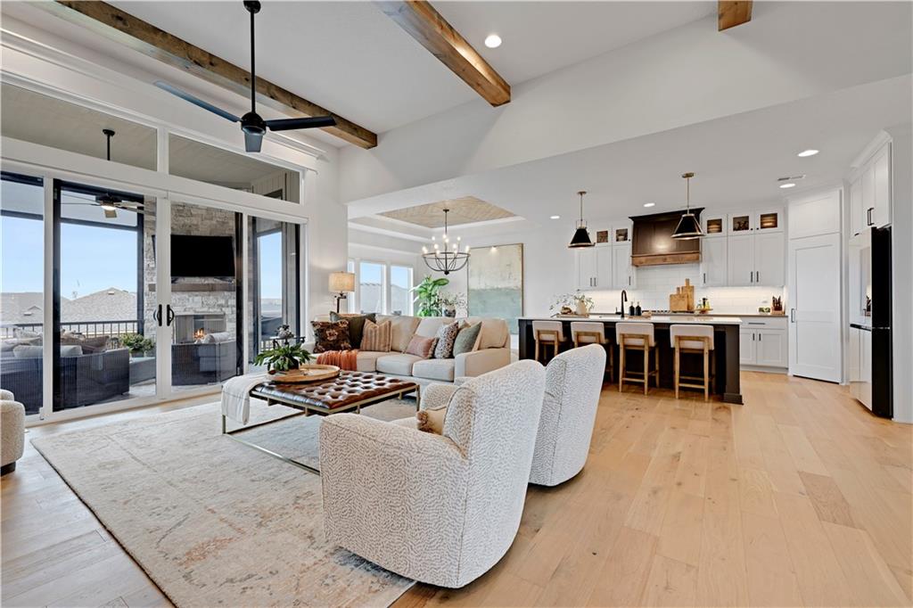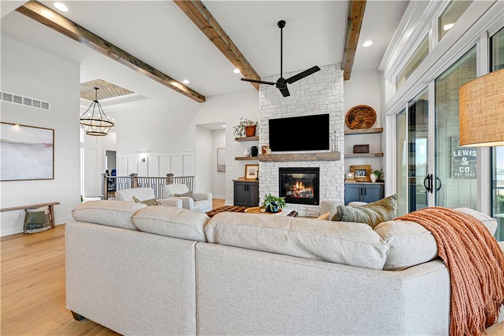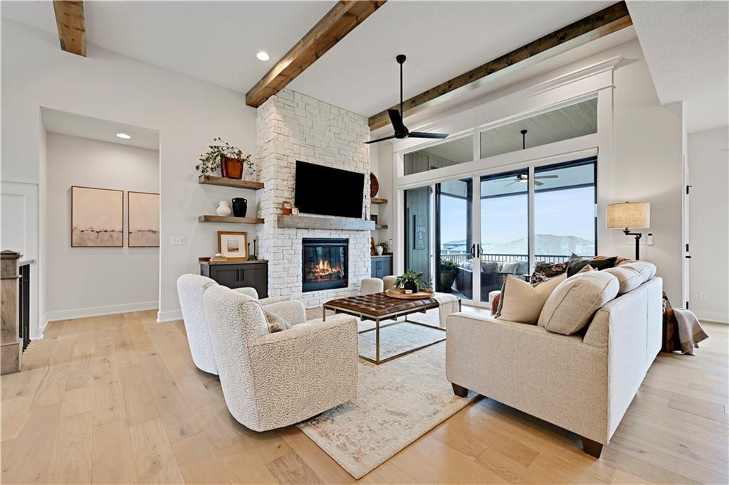 Welcome to your Dream Home! The “Phoenix III” craftsman Reverse floorplan by Walker Custom Homes with incredible landscaping in a culdasac on a Walkout Lot! As you enter into this stunning and carefully curated home, the spacious foyer boasts custom wainscot, upgraded trim, ceiling & lighting with exquisite wood flooring! The Great Room has ample natural light, custom beams and fireplace with impeccable stonework. Access to a covered deck from the Great Room and dining room. The entertainer's kitchen features custom cabinets, gas cooktop, exceptional appliances, large island and a walk-in pantry. Peaceful dining area with custom ceiling work & designer lighting overlooks the large back yard. The serene covered deck at the main level with a ceiling fan, fireplace, high-end smart motorized shades, with door to the grill deck. The Primary Bedroom has custom ceiling craftsmanship, feature wall and ceiling fan for a luxurious retreat, with a door for the covered deck. The spa-like primary bathroom has a double vanity, zero entry shower and stand-alone tub. Primary walk-in closet off the bathroom with ample storage and pull-down rods. Office/Bedroom #2 on the main level with wood flooring, ceiling fan and feature wall, all next to 3/4 bathroom. Main level laundry off the kitchen, next to a boot bench. Designer stair carpet leading you to the Recreation Area in the Lower Level that is an entertainer's dream with a feature wall and full walkout! It includes a custom bar, next to the door to the covered patio, 2 more bedrooms and a full bathroom. Slider door at Lower Level to the covered extended patio with a tucked away nook and huge back yard with ample privacy landscape! Multiple exterior living spaces for all of life's entertaining. Fenced in level back yard for fun times for years to come! Nestled in one of Olathe’s premier communities - Stonebridge Trails with amenities galore - 4 pools, 2 clubhouses (one with a workout facility), sports courts, playgrounds and trails!