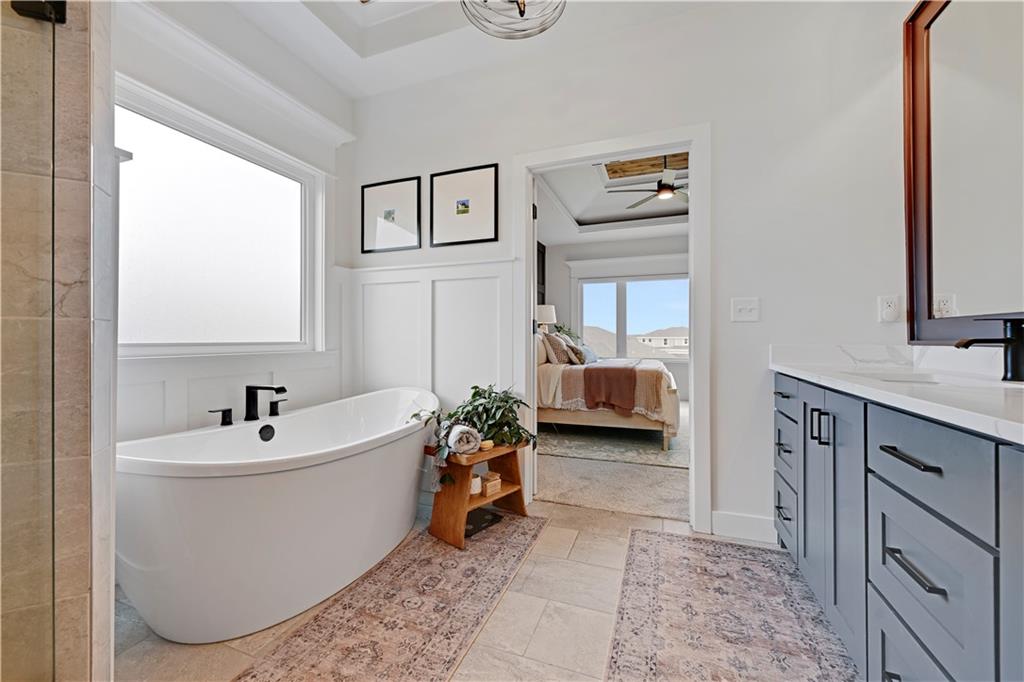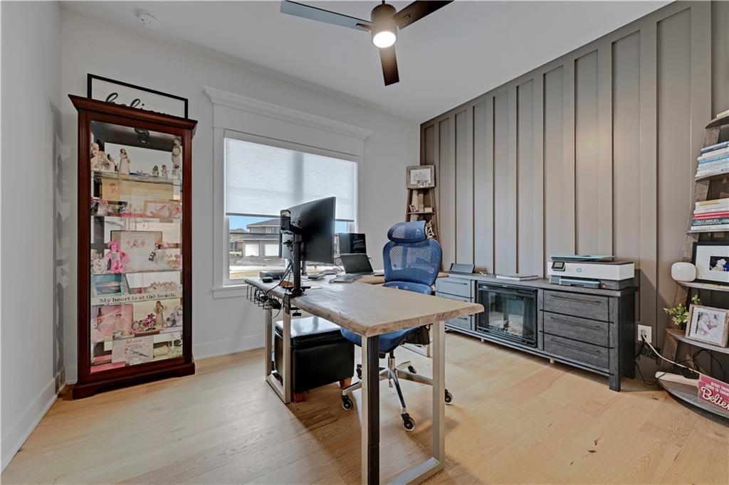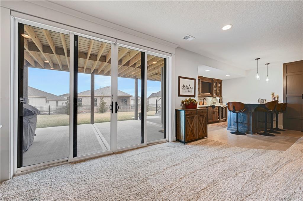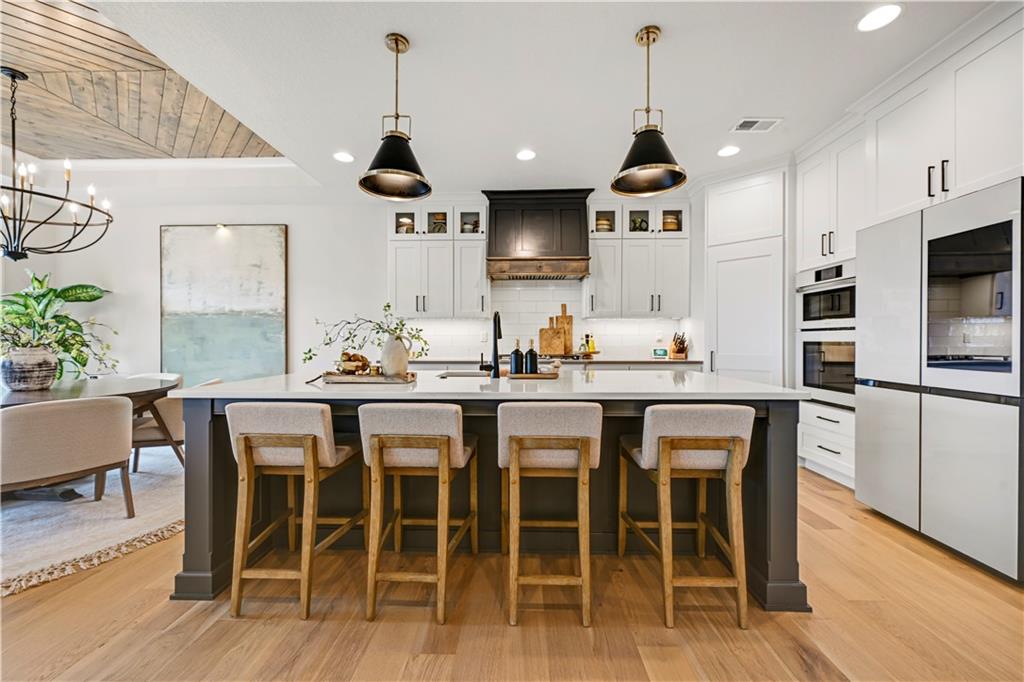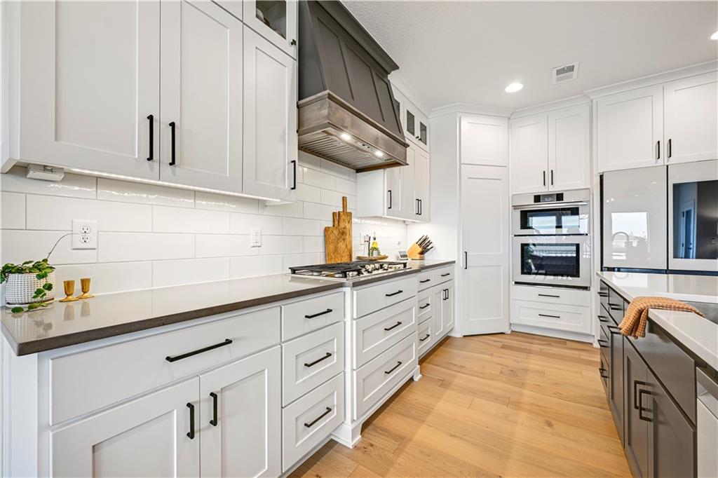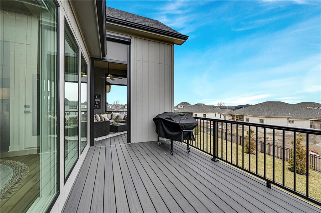Welcome to your Dream Home! The “Phoenix III” craftsman Reverse floorplan by Walker Custom Homes with incredible landscaping in a culdasac on a Walkout Lot! As you enter into this stunning and carefully curated home, the spacious foyer boasts custom wainscot, upgraded trim, ceiling & lighting with exquisite wood flooring! The Great Room has ample natural light, custom beams and fireplace with impeccable stonework. Access to a covered deck from the Great Room and dining room. The entertainer's kitchen features custom cabinets, gas cooktop, exceptional appliances, large island and a walk-in pantry. Peaceful dining area with custom ceiling work & designer lighting overlooks the large back yard. The serene covered deck at the main level with a ceiling fan, fireplace, high-end smart motorized shades, with door to the grill deck. The Primary Bedroom has custom ceiling craftsmanship, feature wall and ceiling fan for a luxurious retreat, with a door for the covered deck. The spa-like primary bathroom has a double vanity, zero entry shower and stand-alone tub. Primary walk-in closet off the bathroom with ample storage and pull-down rods. Office/Bedroom #2 on the main level with wood flooring, ceiling fan and feature wall, all next to 3/4 bathroom. Main level laundry off the kitchen, next to a boot bench. Designer stair carpet leading you to the Recreation Area in the Lower Level that is an entertainer's dream with a feature wall and full walkout! It includes a custom bar, next to the door to the covered patio, 2 more bedrooms and a full bathroom. Slider door at Lower Level to the covered extended patio with a tucked away nook and huge back yard with ample privacy landscape! Multiple exterior living spaces for all of life's entertaining. Fenced in level back yard for fun times for years to come! Nestled in one of Olathe’s premier communities - Stonebridge Trails with amenities galore - 4 pools, 2 clubhouses (one with a workout facility), sports courts, playgrounds and trails!