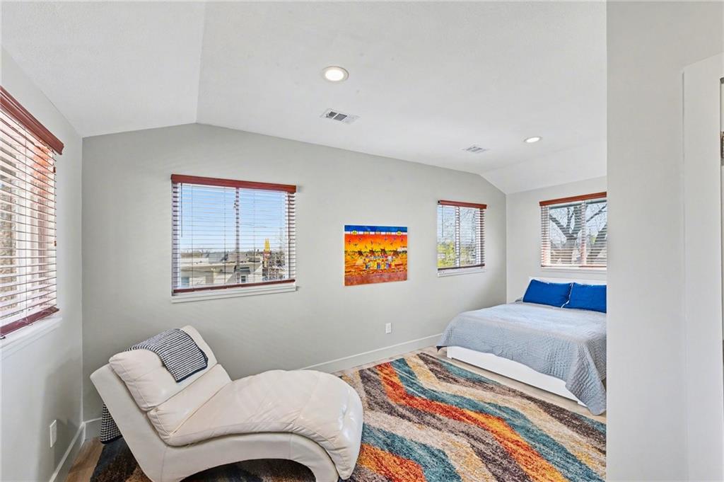 Step into modern sophistication with this one-of-a-kind custom contemporary 1.5 story home designed for those who appreciate bold architecture and refined industrial style. Upon entering, you’re greeted by soaring ceilings and expansive open spaces that create a dramatic yet inviting atmosphere filled with lots of natural light. Polished concrete floors flow throughout the main level, offering both durability and sleek, minimalist appeal. The open-concept layout seamlessly connects the living, dining, and kitchen areas—perfect for entertaining or everyday living. Overhead storage and exposed ductwork adds character and architectural interest, blending urban loft aesthetics with high-end custom design. The spacious kitchen features clean lines, premium finishes, and generous workspace, making it as functional as it is stylish. Upstairs, the thoughtfully designed second level provides privacy and comfort, with airy bedrooms all with new updated on-suite baths and generous closet space. Walk out onto your maintenance-free trex deck and expansive patio and enjoy your private yard. The oversized detached 2 car garage offers great additional storage space. Every detail of this home reflects intentional craftsmanship—from the industrial-inspired elements to the warm, modern finishes that balance edge with comfort elegance. If you’re seeking a distinctive property that stands apart from the ordinary, this custom contemporary home delivers unforgettable style and substance. Convenient Location in Valentine Area & Minutes to Downtown, Plaza and I-35.