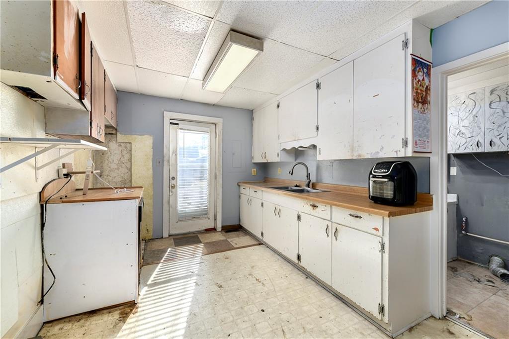 This 1.5-story home features 4 bedrooms and 2 baths and is priced to sell. Located just one block from the square, it sits in the heart of Paola. The main level includes the laundry room, the primary bedroom and full bathroom. Upstairs you'll find three secondary bedrooms and an additional full bathroom. Enjoy plenty of off-street parking thanks to the pass-through driveway. The stove hookup is electric. The extra-large fenced backyard includes a shed and a clubhouse. Attractive brick hardscaping accents the patio and front sidewalks. The roof is approximately 10 years old, the HVAC system is about 12 years old, and the water heater is roughly 4 years old. This home has good bones and is ready for some updates and repairs.