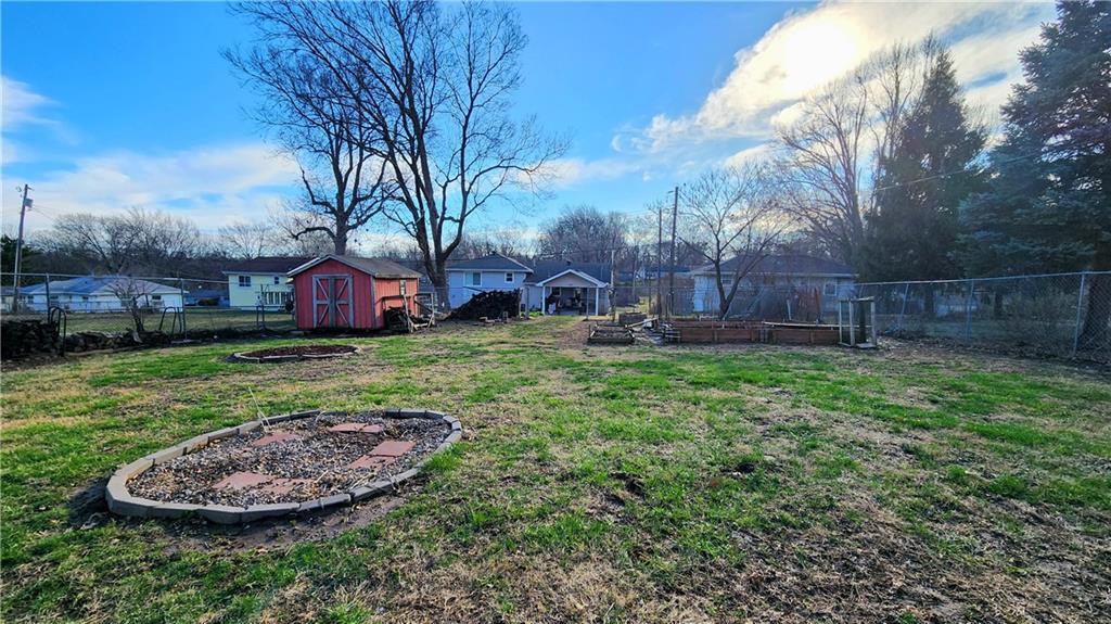 Welcome to Your New Home! This 3-bedroom, 1.1-bath sits on a quiet street in a quiet neighborhood within the Raytown School District. When you walk in the front door, you are greeted by a large living area with a wood stove and dining area, making it the perfect entertaining space for any family. The dining room walks out to the HUGE backyard and a covered 14'x16' composite deck, perfect for enjoying the Spring weather while sipping your morning coffee! The exterior of the home is vinyl-sided, making this home low-maintenance with replacement Champion windows. The main bathroom has a LARGE walk-in shower with a linen closet, storage, and nice sized vanity. Don't miss the HUGE driveway perfect for an RV, spare vehicle, or just enough parking for a gathering. The yard is HUGE with lots of space to play, garden, or put in a pool with 6-foot fencing and a shed.