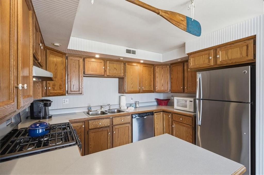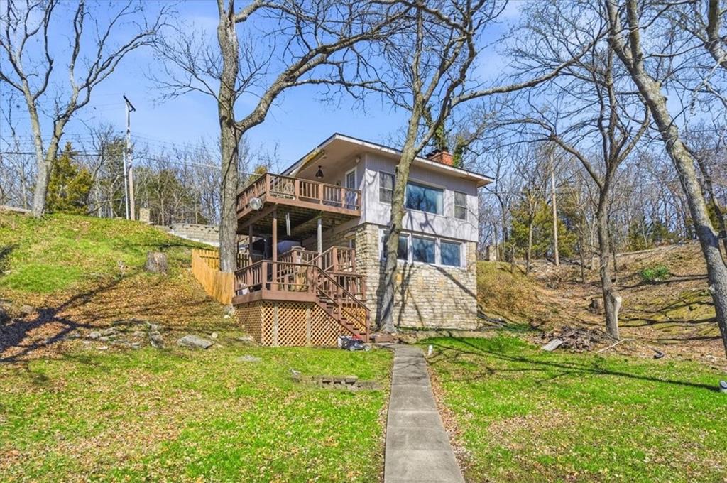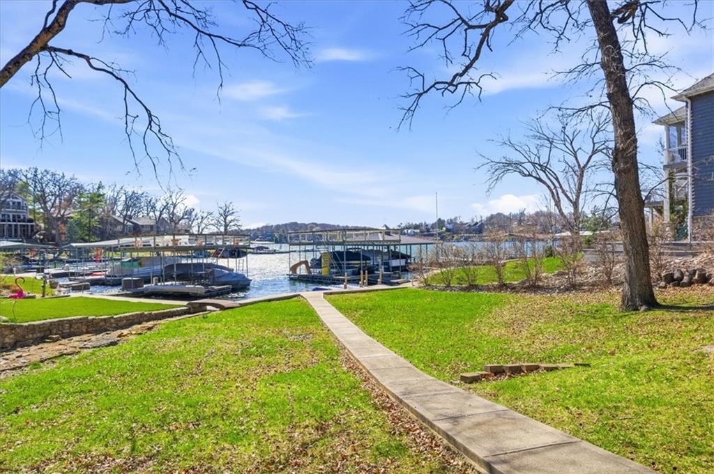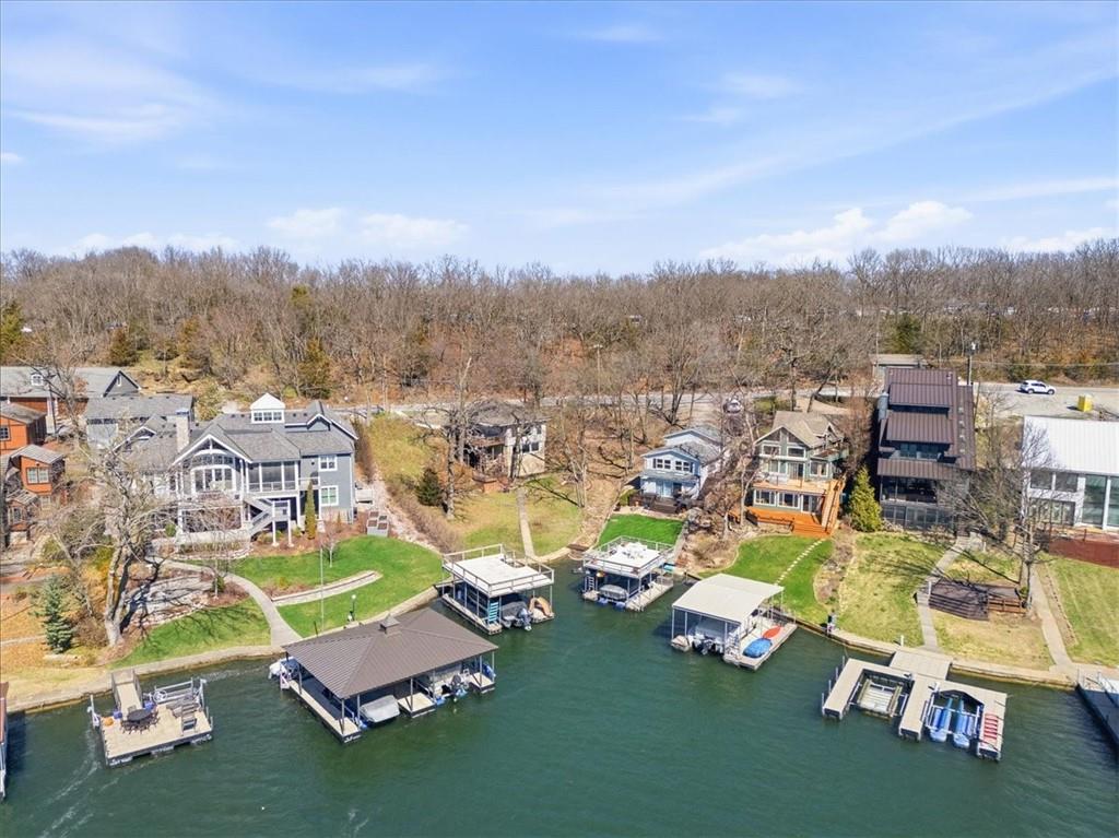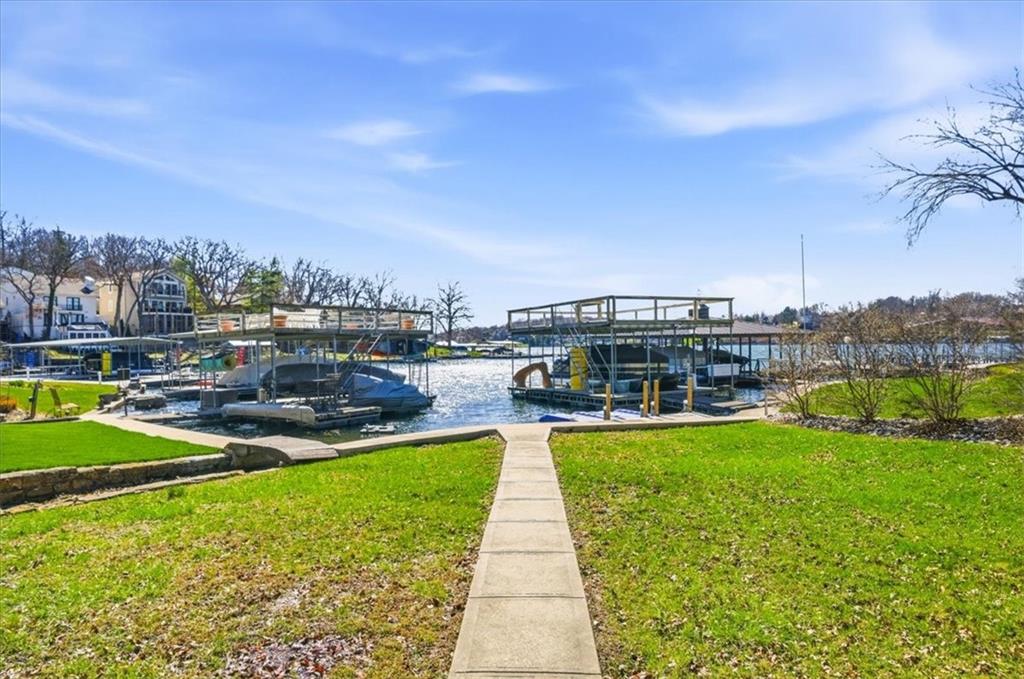 Great Tier 1 Lake Front property with double decker dock in desirable cove. Just under 1/4 acre, this space gives you the availability to move right in, remodel to your taste, or start fresh and build your dream lake home! Currently situated, the upper level features a spacious living room, full bathroom, and two bedrooms. Lower level features an additional living room, full kitchen, and additional full bath. Both levels do have exterior access with deck and patio. Lots of yard space for laying our or playing a set of corn hole!