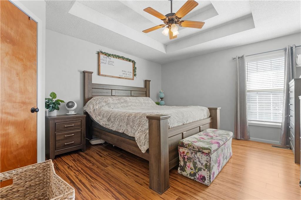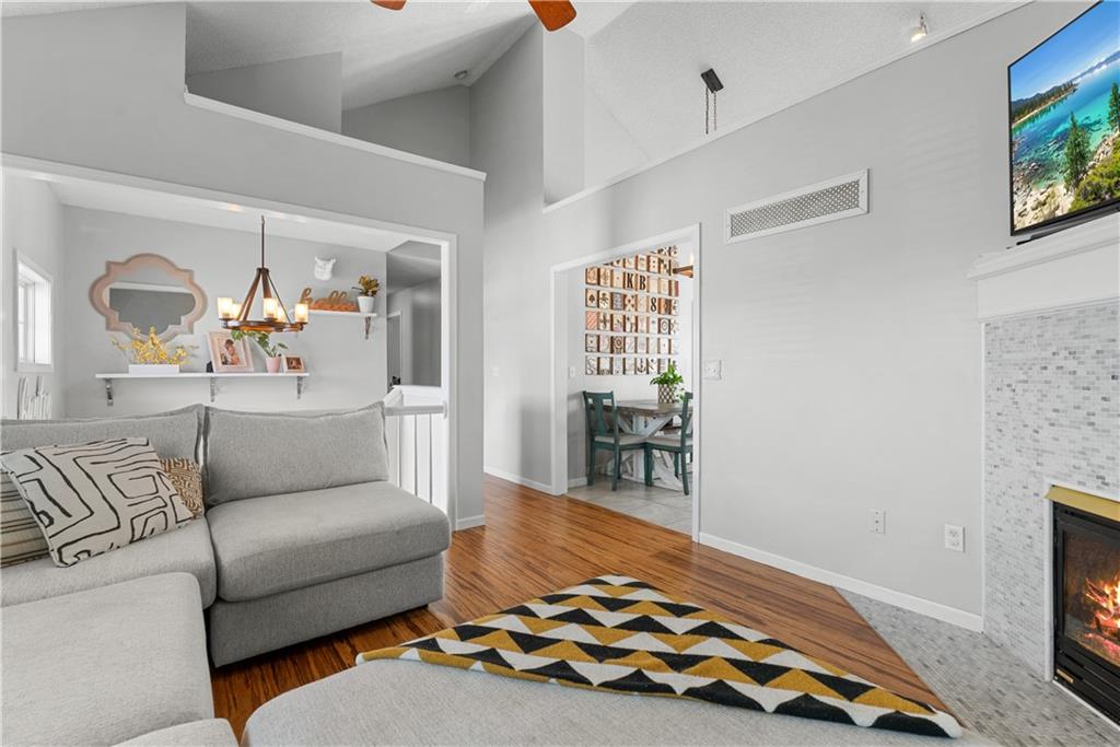 Charming and full of character, this well-maintained home offers thoughtful updates and a functional layout in a desirable cul-de-sac setting. Bamboo flooring, tile in the kitchen and primary shower, and Carrara mosaic tile surrounding the fireplace add warmth and style throughout.The spacious kitchen features a center island, convenient laundry room access, and flows seamlessly into the main living area with vaulted ceilings. Step outside to enjoy the newer deck overlooking the fenced backyard on a corner lot. The primary suite offers double walk-in closets, while the finished lower level provides flexibility as a fourth bedroom or second living area, complete with a private half bath and closet, plus walk-out access to the backyard. Additional highlights include a newer roof, newer deck and a garage perfect for hobbies or extra storage. A home that blends comfort, functionality, and charm in a fantastic location and in a great school district.