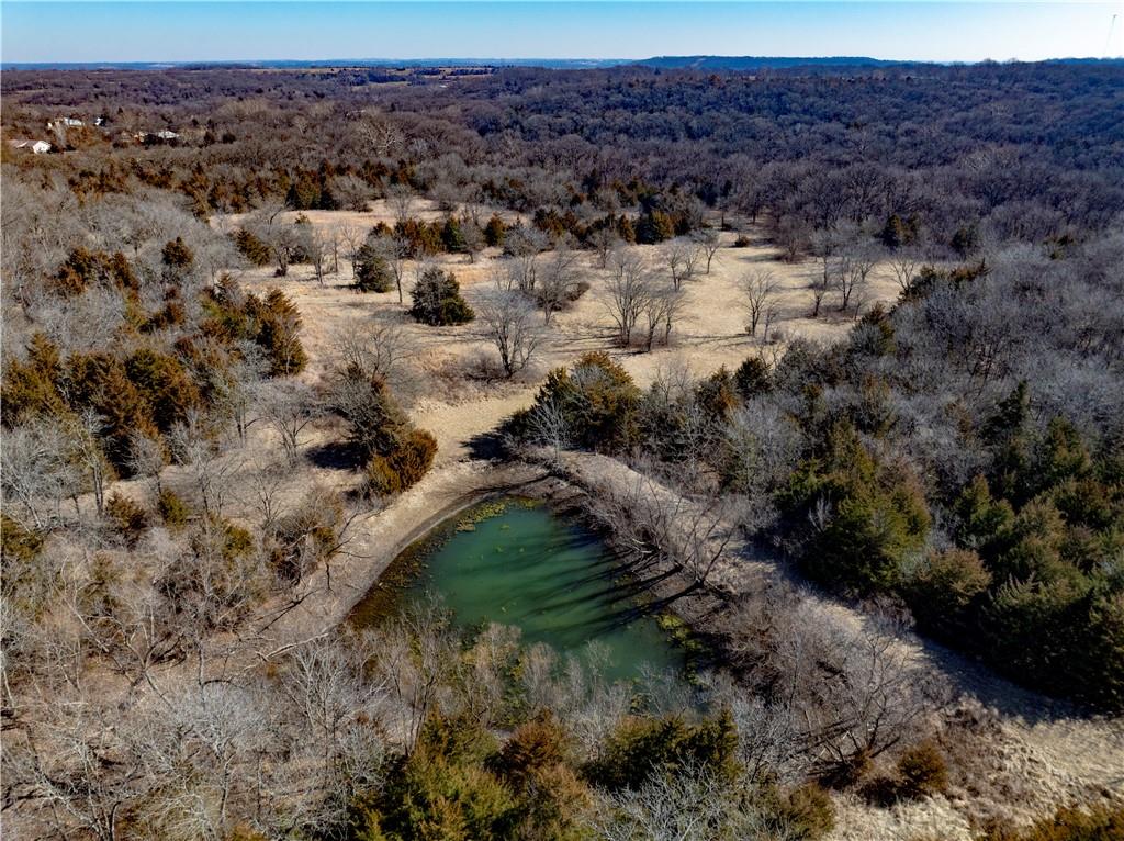 40 ACRE TRACT NORTH OF TONGANOXIE W/ BEAUTIFUL BUILDING SITES, GOOD ACCESSIBLE DRIVEWAY INTO PROPERTY! HUNTER'S PARADISE. A NATURES RETREAT W/BEAUTIFUL TREES, POND, STREAM AND SETTING! MOTHER NATURE AT HER BEST! SEVERAL LAYERS OF ELEVATION TO PICK THE PERFECT SPOT FOR A NEW HOME! Property has approximately 5 to 6 acres of hay ground if so desire. Road work on 235th will offer paved road to Kissinger soon with approximately 3/4 mile of gravel to property. Rural water line in area ends near property line. Checking on availability of water meter and cost to run line. (Rural Water #9)