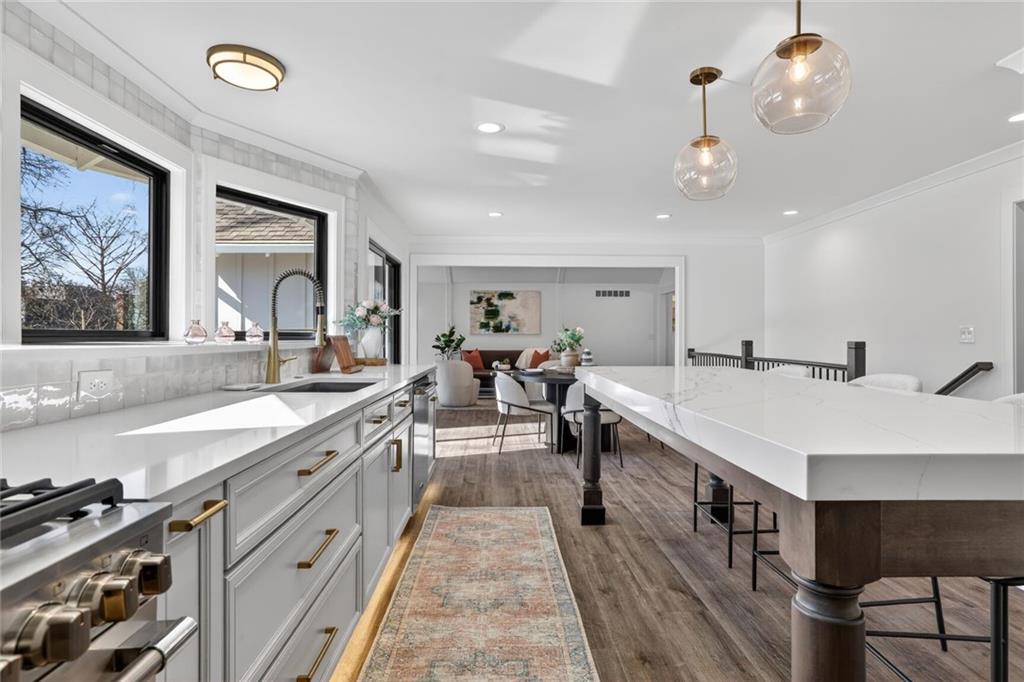 Complete top-to-bottom renovation of a stunning Kenilworth ranch, meticulously designed to meet modern living while preserving its classic charm. This versatile plan features five spacious bedrooms, plus three and a half beautifully appointed bathrooms. Primary suite features bidet, soaking tub, and spa-like shower system. Two main-floor living areas are thoughtfully designed to seamlessly meet needs for everyday living and entertaining guests. The lower level offers additional living and recreation space, complete with a wet bar and built-in entertainment area. The combination of a thoughtfully designed home and prime location makes this careful renovation an exceptional opportunity for anyone looking to be situated in center of all the best the Prairie Village has to offer.