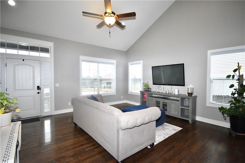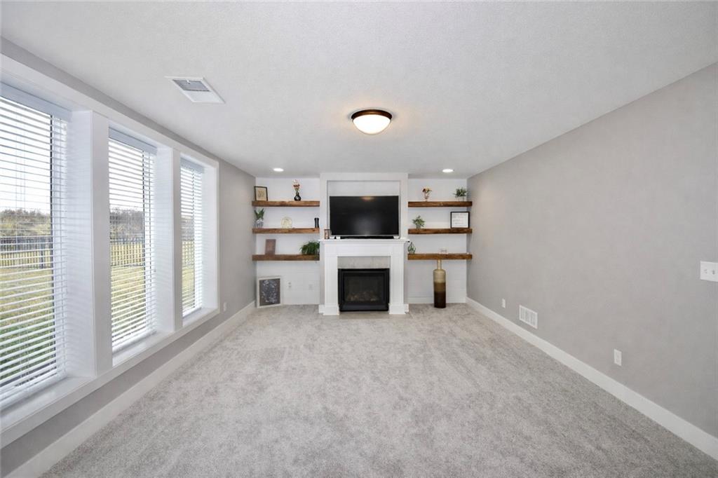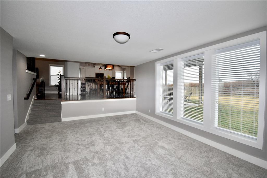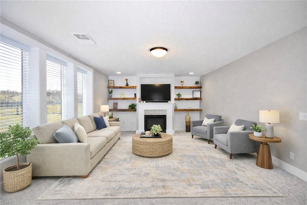 Welcome home to this unique 2 Story/Atrium Floor plan built by Aspen! You’ll love this layout! Walk-in to the Hearth/Flex Room, spacious kitchen w/Granite counter tops, painted cabinets, stainless appliances, large island, pantry, kitchen window and hardwood floors. Kitchen dining area open to 2nd living area below, w/fireplace floating shelves & accents wall. Large mud area and half bathroom w/granite just off garage. Upstair staircase w/wrought iron spindles leads to all bedrooms and laundry room. Primary bathroom with double vanity, granite counter tops, single STANDING TUB, tiled walk-in shower, tiled floors, and walk in closet. Secondary bedroom features double vanity, titled floor & built-ins. Finished basement and unfinished area for storage. Movie Screen Projector, Leather Reclining Chairs could be purchased separately. Just installed new carpet in living area, bedrooms, stair carpet & fresh paint! Covered patio, Sprinkler System, underground INVISIBLE FENCE, currently yard backs to greenspace/land!! ATTEN VETERAN BUYERS, Seller has VA ASSUMABLE LOAN ***APROX. 2.875% ***(WOW HUGE SAVINGS) HOA offers playground, large swimming pools & walking trials. Just 15 minutes to KCI Airport & aprox. 15-20 minutes to Downtown. Liberty School District, Liberty North High School. Close to Liberty-KC Shops & Restaurants! PHOTOS COMING SOON!!