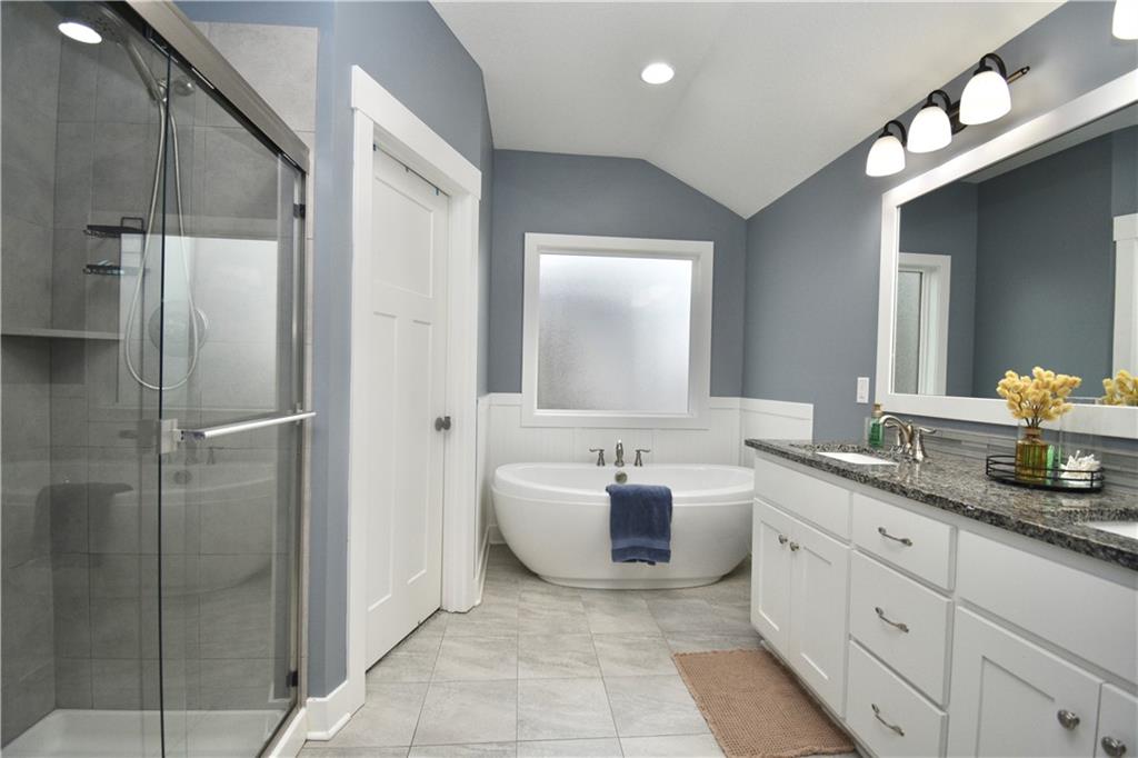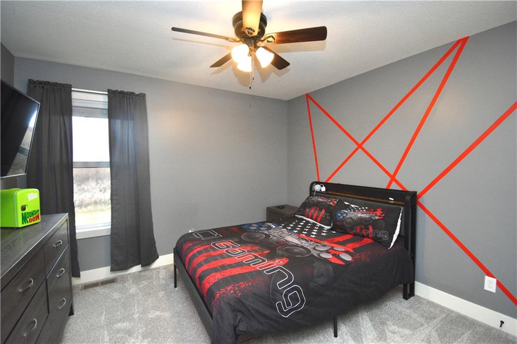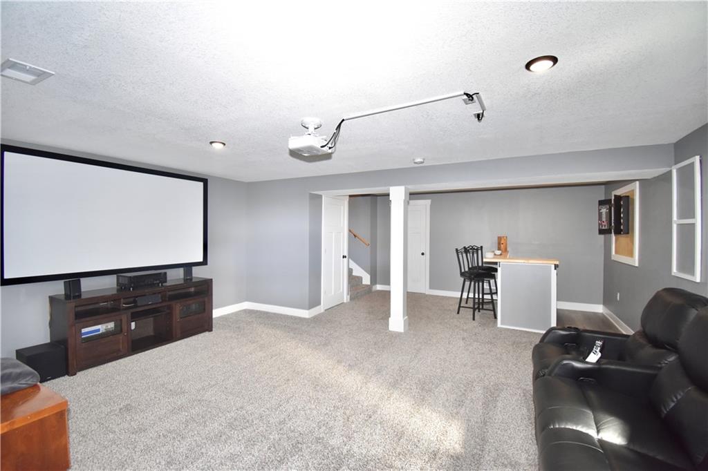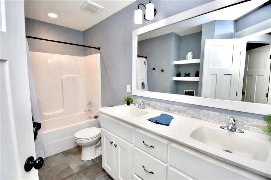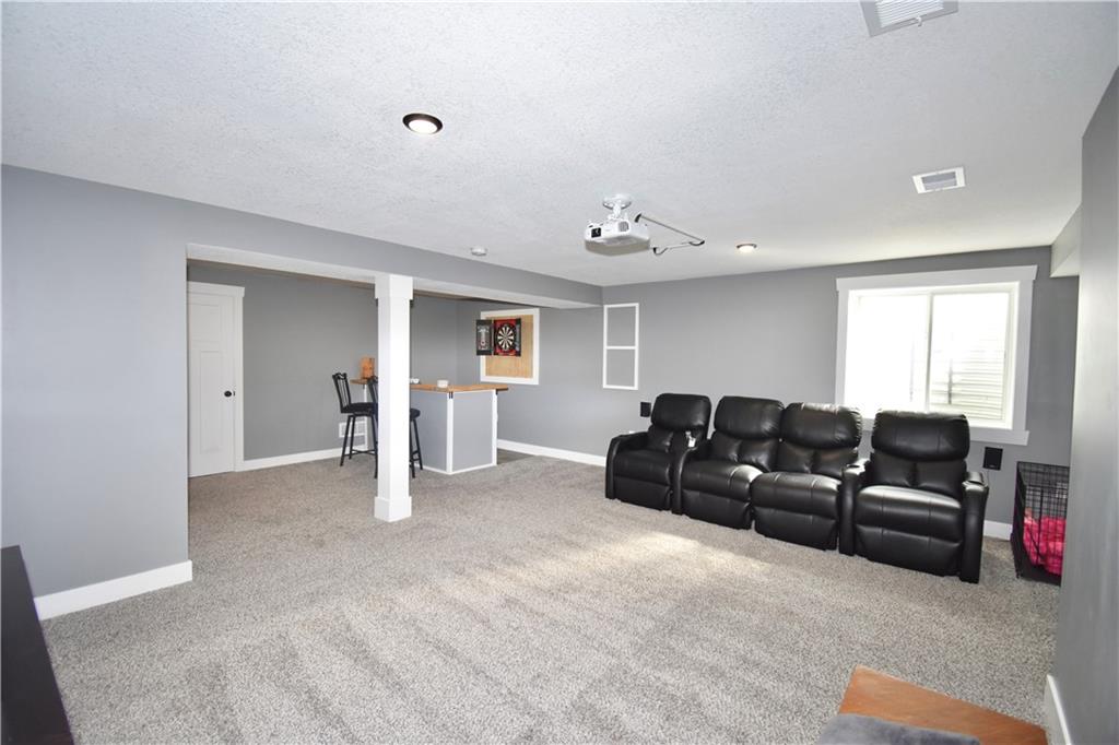Welcome home to this unique 2 Story/Atrium Floor plan built by Aspen! You’ll love this layout! Walk-in to the Hearth/Flex Room, spacious kitchen w/Granite counter tops, painted cabinets, stainless appliances, large island, pantry, kitchen window and hardwood floors. Kitchen dining area open to 2nd living area below, w/fireplace floating shelves & accents wall. Large mud area and half bathroom w/granite just off garage. Upstair staircase w/wrought iron spindles leads to all bedrooms and laundry room. Primary bathroom with double vanity, granite counter tops, single STANDING TUB, tiled walk-in shower, tiled floors, and walk in closet. Secondary bedroom features double vanity, titled floor & built-ins. Finished basement and unfinished area for storage. Movie Screen Projector, Leather Reclining Chairs could be purchased separately. Just installed new carpet in living area, bedrooms, stair carpet & fresh paint! Covered patio, Sprinkler System, underground INVISIBLE FENCE, currently yard backs to greenspace/land!! ATTEN VETERAN BUYERS, Seller has VA ASSUMABLE LOAN ***APROX. 2.875% ***(WOW HUGE SAVINGS) HOA offers playground, large swimming pools & walking trials. Just 15 minutes to KCI Airport & aprox. 15-20 minutes to Downtown. Liberty School District, Liberty North High School. Close to Liberty-KC Shops & Restaurants! PHOTOS COMING SOON!!