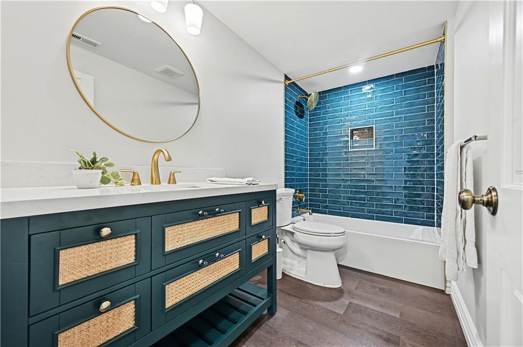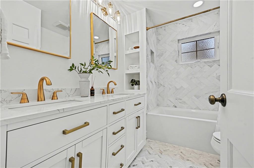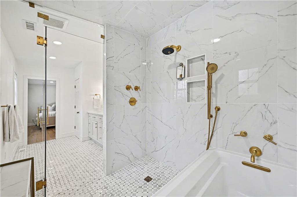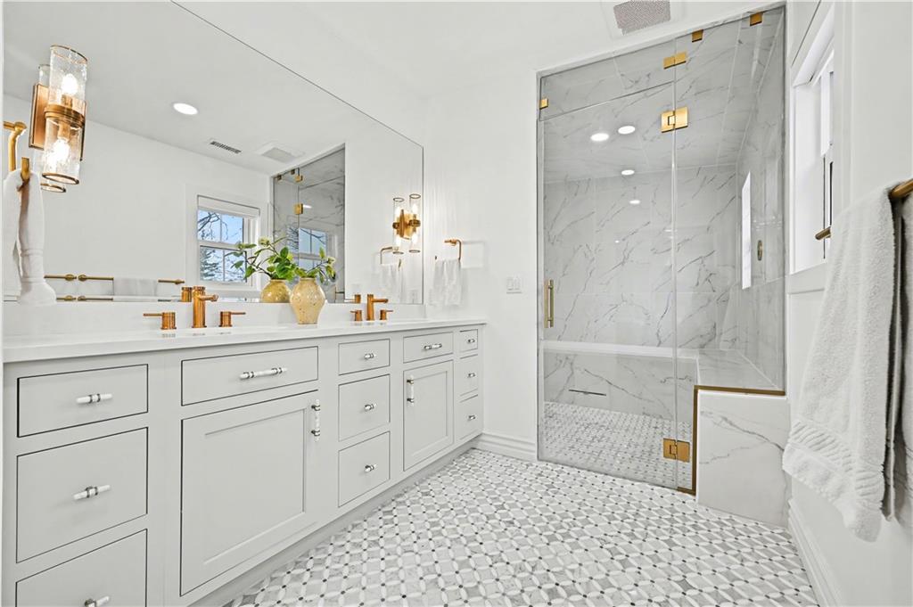 Absolutely one-of-a-kind and nothing short of spectacular. This extraordinary home was taken down to the studs and completely rebuilt — every square inch thoughtfully designed and no expense spared. Completely renovated and completed in September of 2024. Offering 3,600 square feet of pure luxury, this home features 4 bedrooms, 3 full baths, and a versatile office/nursery/5th bedroom located just off the primary suite on the second level. The chef’s kitchen is truly the heart of the home, showcasing an oversized statement island, high-end appliances, stunning quartzite countertops, gas range with custom hood, designer lighting, and abundant cabinetry. Walk-in pantry and mud room area off the attached garage. Soaring ceilings and walls of natural light create an airy, inviting atmosphere. The kitchen flows seamlessly into the dining area and expansive family room. Fabulous bar complete with wine fridge and gorgeous custom built-ins. Step out back onto spacious new Trex deck with gas hook up. Sprinkler system covers entire yard. Gleaming new hardwood floors run throughout. Spacious primary suite is a true retreat, featuring a walk-in closet and a spa-inspired bath designed for ultimate relaxation. Steam shower in primary bath! Laundry is located just off the primary. Two additional bedrooms and a beautifully updated full bath are situated on the main level. The lower level is an entertainer’s dream — complete with a fourth bedroom, full bath, recreation space, and an incredible golf simulator that takes this home to the next level. From the curated color palette to the elevated finishes and designer lighting, every detail is a perfect 10. Special features not to be ignored - new roof, all new windows, James Hardie fiber cement siding and trim, new 200 amp service, all water, sewer and electrical lines replaced within the house, full house water filter and softener system, 97% High Efficiency zoned HVAC system, and the list goes on and on. Unbeatable location.