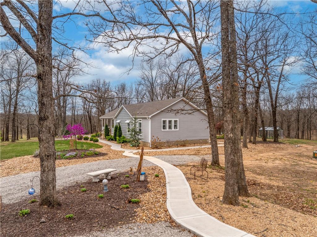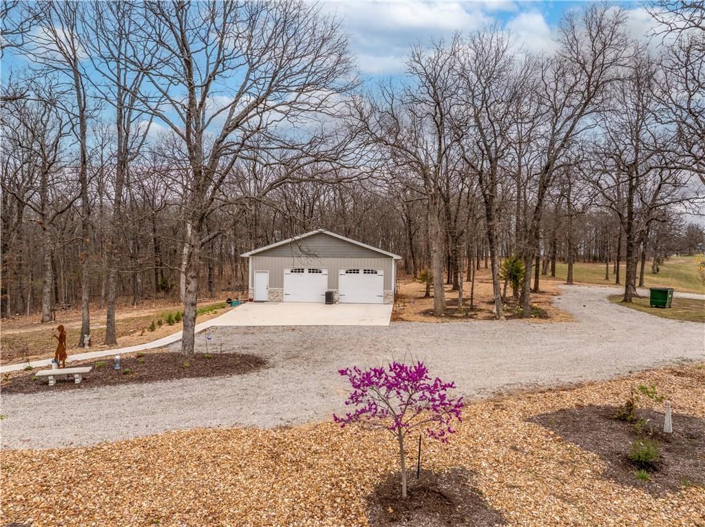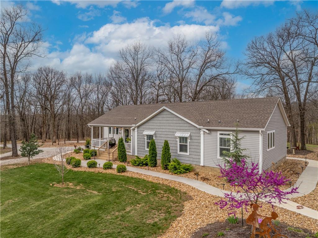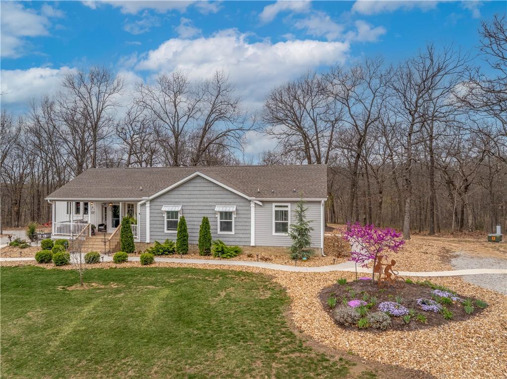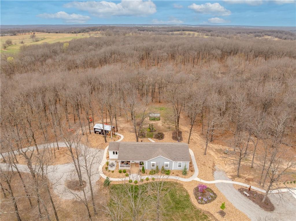 Welcome to this exquisitely designed home, The Laney, a cross-mod home built by Southern Energy Homes, where elegance meets functionality in every corner. A charming wrap-around porch leads into a spacious foyer. The expansive living room flows into a bright, modern kitchen with handcrafted cabinets & ample countertop space, including a generous center island. The luxurious master suite features dual walk-in closets & a glamorous en-suite bath with a soaking tub, stall shower, & his & hers vanities. Generously sized secondary bedrooms with a roomy second bath & guest bath for comfort. Also included, a versatile utility/laundry/mud room & ample storage space throughout. The property features a detached 2-car garage with heated 1/2bath & extra storage, plus a second 2-car garage for additional parking and storage. Set on a breathtaking 50-acre expanse, the landscaped yard has two driveway entries, perennial flowers, ornamental trees, & evergreens. Enjoy scenic trails through lush timber, perfect for exploration. The property is fenced on three sides, with 1,378 feet of highway frontage for easy access. Abundant wildlife make it ideal for hunting & observation. Don't miss this exceptional land where adventure & tranquility await!