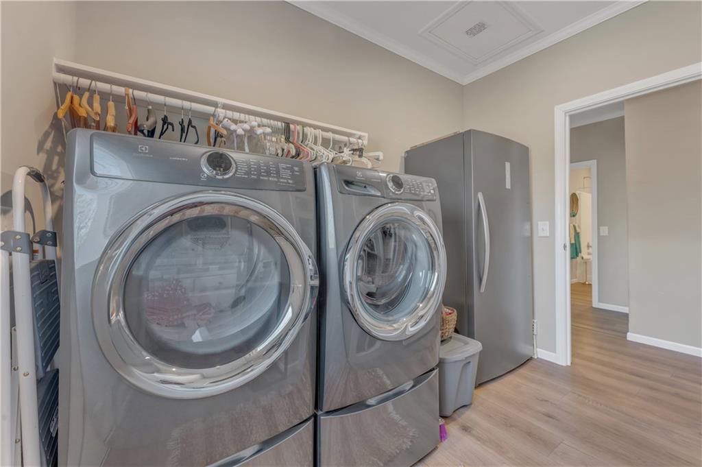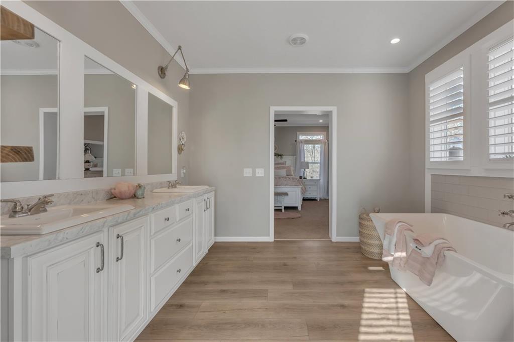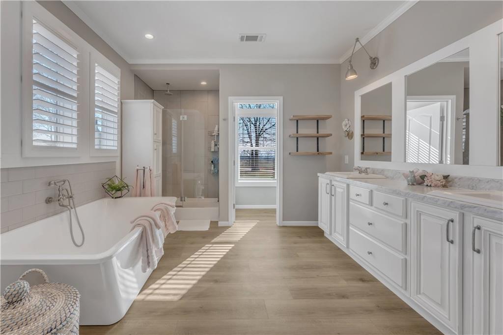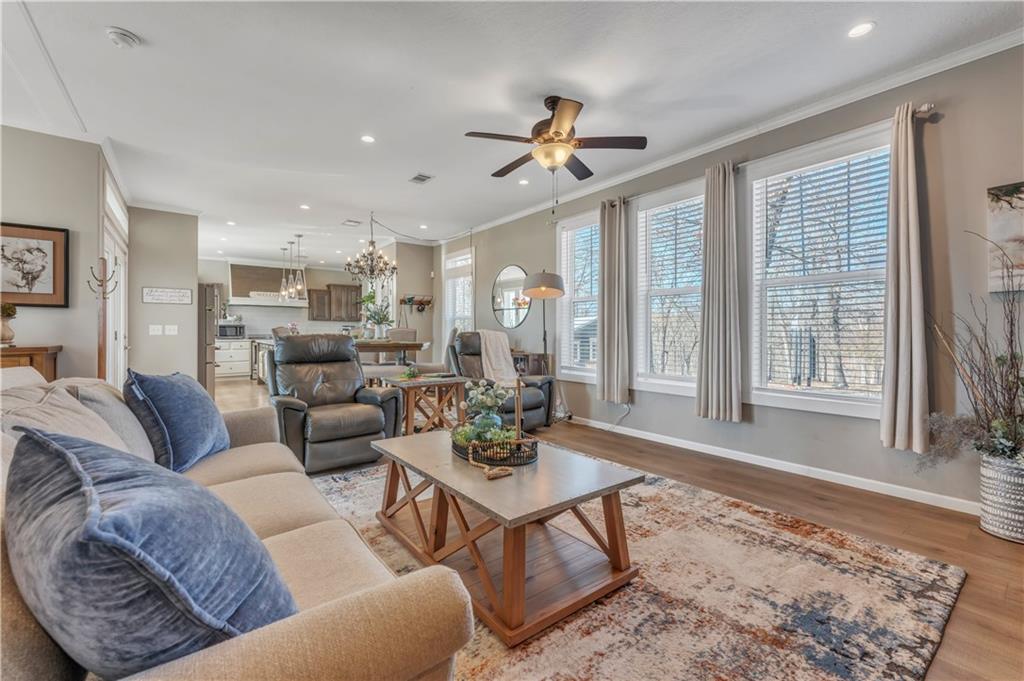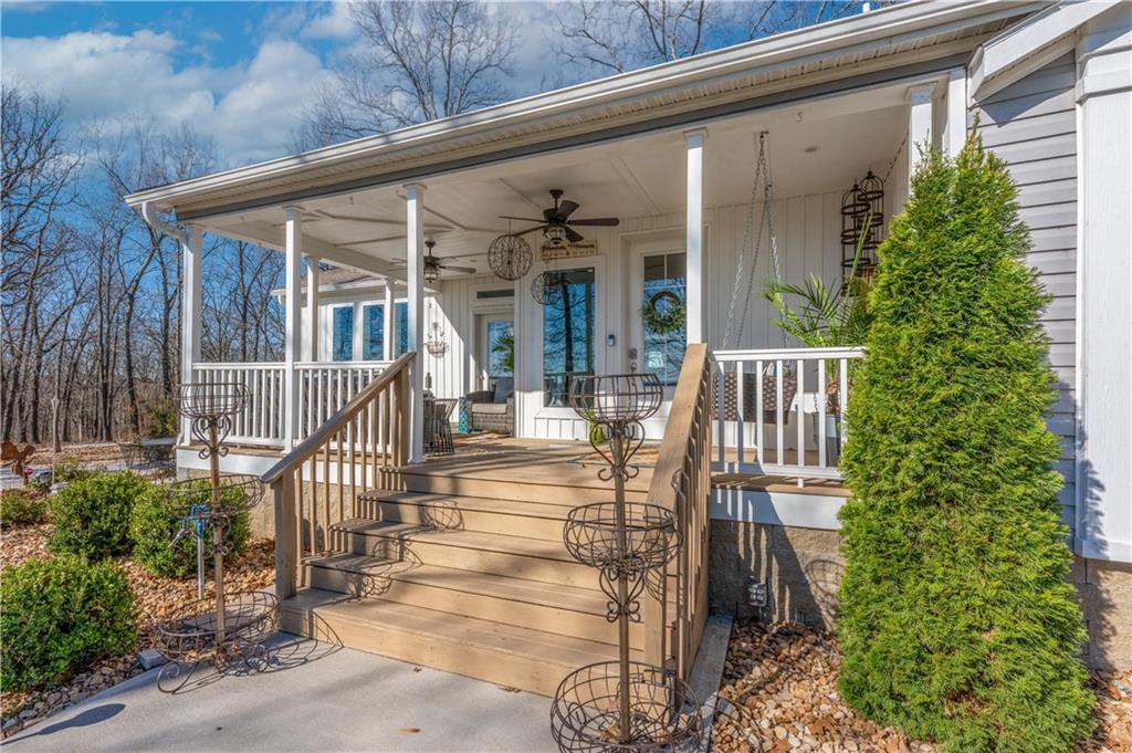Welcome to this exquisitely designed home, The Laney, a cross-mod home built by Southern Energy Homes, where elegance meets functionality in every corner. A charming wrap-around porch leads into a spacious foyer. The expansive living room flows into a bright, modern kitchen with handcrafted cabinets & ample countertop space, including a generous center island. The luxurious master suite features dual walk-in closets & a glamorous en-suite bath with a soaking tub, stall shower, & his & hers vanities. Generously sized secondary bedrooms with a roomy second bath & guest bath for comfort. Also included, a versatile utility/laundry/mud room & ample storage space throughout. The property features a detached 2-car garage with heated 1/2bath & extra storage, plus a second 2-car garage for additional parking and storage. Set on a breathtaking 50-acre expanse, the landscaped yard has two driveway entries, perennial flowers, ornamental trees, & evergreens. Enjoy scenic trails through lush timber, perfect for exploration. The property is fenced on three sides, with 1,378 feet of highway frontage for easy access. Abundant wildlife make it ideal for hunting & observation. Don't miss this exceptional land where adventure & tranquility await!