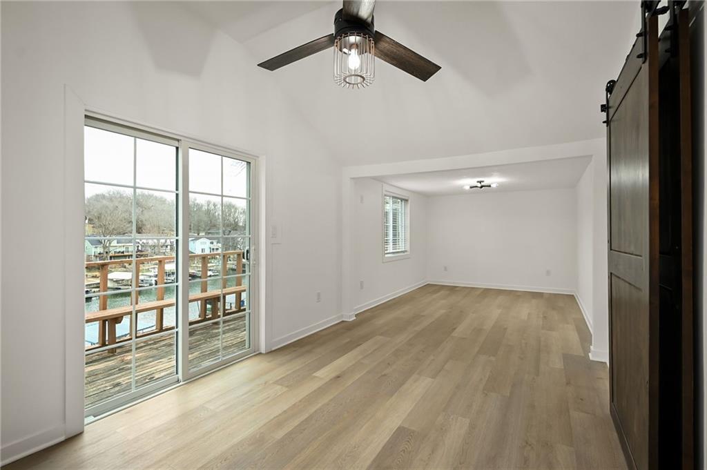 This home has been lovingly upgraded with newer finishes, including fresh paint, flooring throughout, a fully renovated bathroom, and kitchen. The well-dock and attached swim dock are in nice water and offer room for a double well with HOA approval. With the property's close proximity to the water, you'll have room to design a truly one-of-a-kind outdoor living space, a truly special feature at the lake. Imagine accommodating guests just steps from the water's edge. The primary lakeside bedroom has an east-facing deck that offers beautiful sunrises with a lovely shimmering reflection on the water, perfect for morning coffee and enjoying the lake surroundings. And for those hot summer days, you'll have evening shade. The home also includes a living room with a cozy fireplace plus a family room for additional living space, ideal for hosting gatherings or simply unwinding with room to expand. The oversized storage area can be transformed into an office space, rec room, workout room, or bunk room; you decide. Enjoy the convenience of easy highway access off the lake. The third bedroom is non-conforming. PLAY WHERE YOU LIVE with a carefree lifestyle.