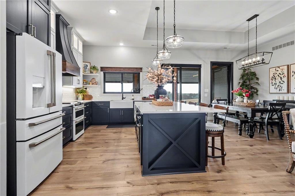 You walk in and feel like you are entering a personal retreat. You'll love the open floor plan, large windows, high ceilings, and beautiful views throughout. Kitchen features high end appliances, custom cabinets and a large island with ample storage making it a perfect place to gather with family and friends. This home was built with a purpose, it has no stairs, wide doorways, an oversized three car garage with ample parking, garage storage and a safe room for emergencies. Beautifully landscaped. This home was built with a Doniphan County Restoration grant and has 10 more years of tax rebates saving you tens of thousands of dollars. Covered porch on the back of the house has heavy custom screens mounted on the perimeter of the porch that work off of a remote. House backs to the future Doniphan Hills Golf Course. As the golf course gets completed, the demand is sure to go up. Come take a look.