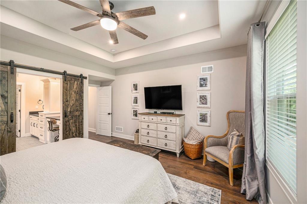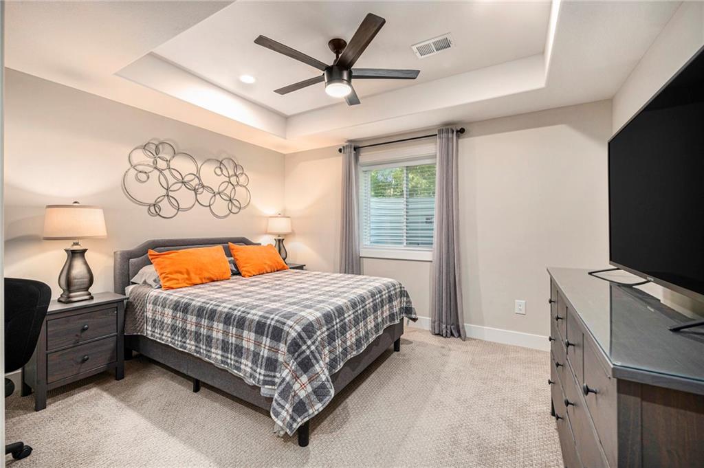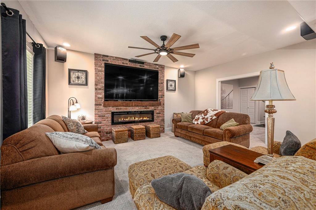 ONLY 4 YEARS NEW! TOO MANY upgrades to list, see Upgrades and Amenities Sheet and Receipts under Supplements. NO DOGS OR ANIMALS, NO SMOKING. Better than New Reverse 1.5 Story Walkout with 5 bedroom, plus a lower level office or workout room on a 1.01 acre lot. Oversized kitchen cabinets with spice drawers and various pullouts, HUGE, Tall walk-in Kitchen Pantry. Upgraded granite countertops in kitchen, 3 bedrooms on main floor and 2 Bedrooms upstairs bathrooms. Master Bedroom has vaulted ceiling and fantastic view of greenspace overlooking 1.1 acre. Master Bathroom has a large shower with 2 Rainforest Shower Heads, vanity and makeup area. 24 ft deep 3-car Garage. MULTIGENERATIONAL: Lower Level has HEATED ceramic Floors in Kitchen and Dining area! Could be an apartment with separate entry someone could live in with beverage & wine fridge that stays, dishwasher too. LL Custom Cabinets and Cabinetry. Workout room, 2 bedrooms and full hall bath with tub over whirlpool jetted tub. Upgraded stair carpet. Upgraded OUTSIDE PUCK LIGHTING that you can turn various colors. CIRCLE DRIVEWAY!! Extra Height on vaulted living room and kitchen with floor to ceiling fireplace and bookshelves/cabinets. Garage: Smart Garage Door Openers, Enlarged to 33 ft wide x 22 ft deep. 2 hard wired cameras in front. Blink Doorbell, fingerprint front door lock. Peaceful and serene, Close enough to downtown Oak Grove while being surrounded by green oasis backing to GREENSPACE. 10 min to Blue Springs…close to Lee's Summit, downtown and I-70. There is room to put an outbuilding, but it has to match the exterior of the house.
