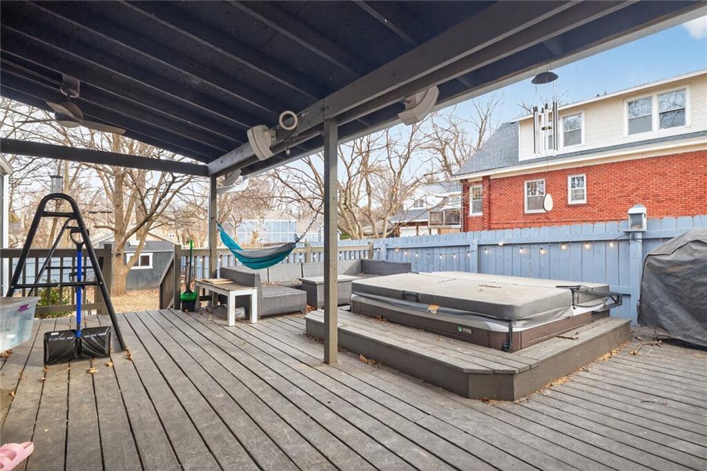 Charming Ranch ready for a new owner! Enjoy an amazing covered deck with a built-in TV, outdoor speakers, and a hot tub-perfect for entertaining. The eat-in kitchen features SS appliances and a water softener throughout the whole house. Cozy floorplan with brand new flooring and additional space in the semi-finished walkup basement. The rear of the property offers automatic gate and tons of parking, now equipped with a Level 2 EV Charger! Convenient location close to The Plaza, Downtown and Prairie Village!