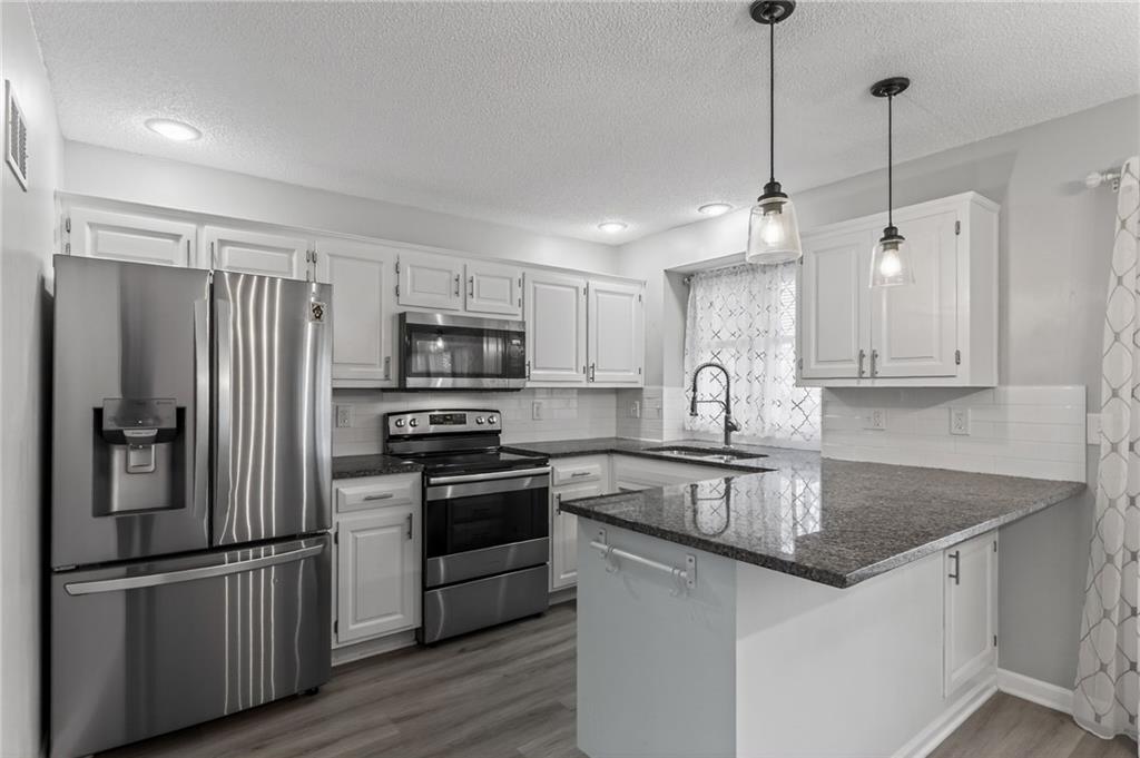 A complete package, easy to own. Recent LVP for the main floor with the kitchen upgrade. Also updated: stair carpet, repaint, and master bathroom. Main level with elegant vaulted ceilings and a classic hearth design. Ample windows in the front wall light the living room naturally. New cabinets, backsplash and countertops complete the kitchen. Main level laundry.