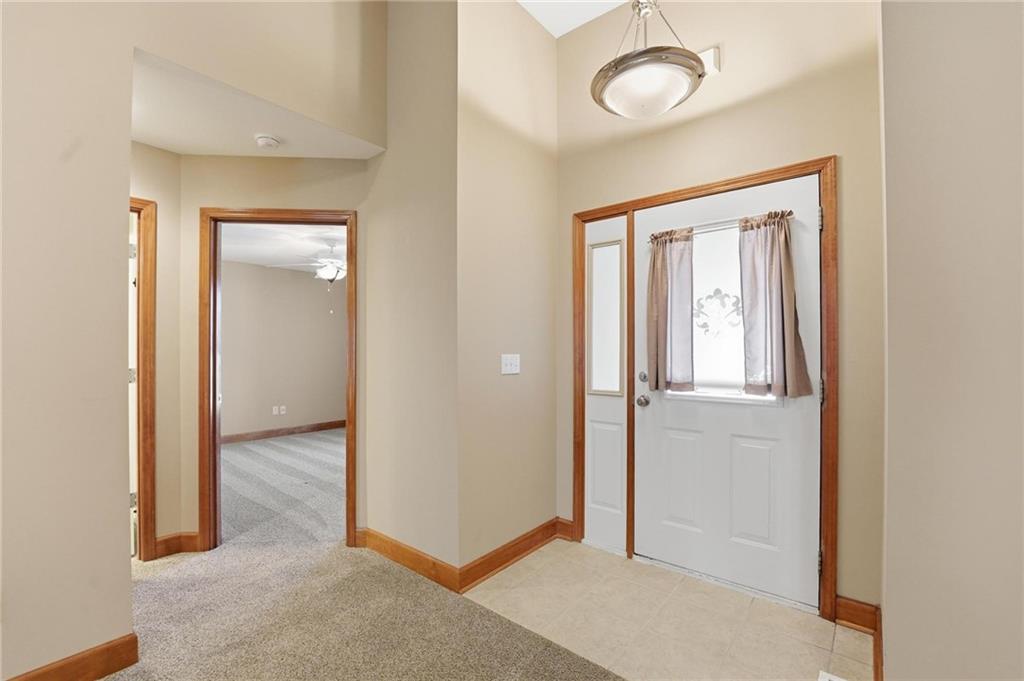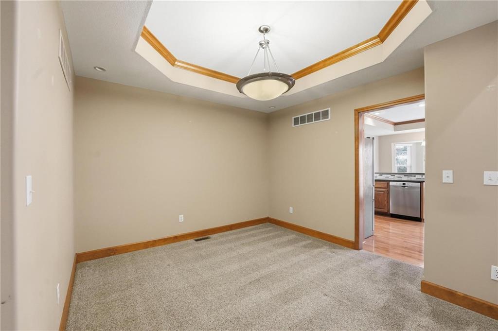 Maintenance-provided Raintree Villa in the highly sought-after Raintree Lake Neighborhood! This super clean, well-maintained home features soaring ceilings, abundant natural light, and a cozy gas fireplace. A flexible dining space offers room for two dining areas or a sitting area. Stainless steel appliances, plus washer and dryer stay. Spacious primary suite includes a walk-in closet and private bath with double vanity, separate shower, and jetted tub. Enjoy walkout access to the patio from the kitchen. A second bedroom perfect for guests. The partially finished basement offers additional living space with a full bath. Plenty of storage space. This has fantastic neighborhood amenities and low-maintenance living!