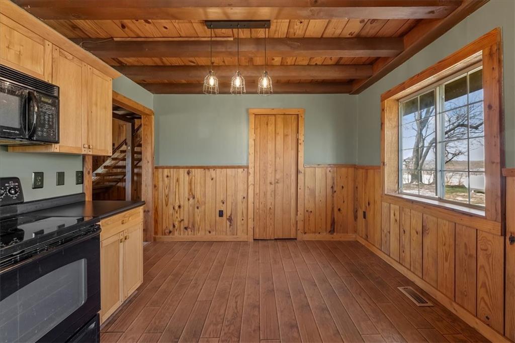 Welcome to "The Lodge"! This wonderful log cabin style home sits on 1.47 acres of land and is surrounded by neighboring farmland, making the setting incredibly peaceful! Enjoy slow coffee-sipping mornings or peaceful summer evenings out on the front porch, then get cozy by the stone masonry fireplace and turn on a movie! This home offers a generously-sized kitchen, a conveniently located laundry/utility room off the kitchen, two main floor bedrooms with a main floor full bathroom, custom log cabin style stairs up to the second floor, a primary suite on the second level with an updated and spacious private bathroom, and a secondary living/family room on the second level in a space that could even be turned into a 4th bedroom if desired. Enjoy the beautiful woodwork and the style that has unfortunately been all but left behind in the modern world. With a 50+ year metal roof, a recently pumped and inspected septic system, a nice shed for storing your yard tools and more, and a view out the windows that makes you want to wake up early and watch the sunrise, you won't regret checking this unique home out. Come see it before it's gone! Buyer/buyer’s agent to verify taxes, square footage, lot size and all details during inspection period. All information deemed reliable but should be verified.