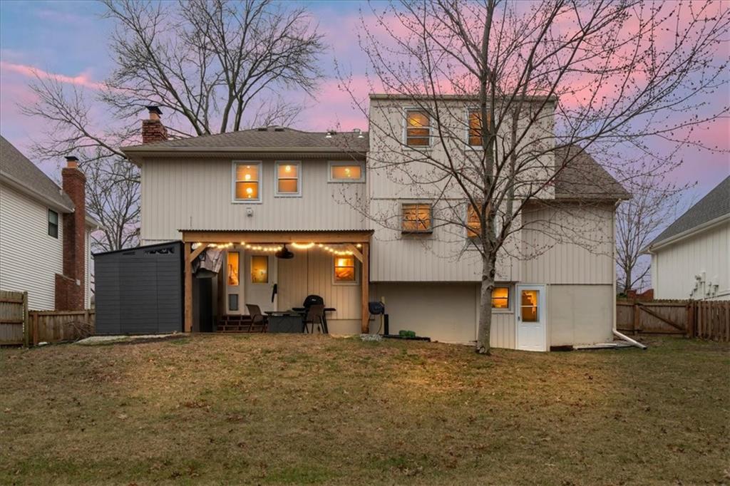 Welcome to this updated, upgraded and beautifully functional home nestled right in the highly coveted 95th & Antioch corridor of Johnson County. Enjoy being able to walk right across the street to Pawnee Elementary, or right around the corner and down the street to Strang Park, Johnson County's amazing new fenced-in children's park! There are so many reasons to love living here. Driving up, you'll be greeted by a generously sized 2 car garage, low maintenance siding and great curb appeal. Walking inside, you'll see a cozy living room with a beautiful custom accent wall, a great formal dining area and a large kitchen that offers an eat-in area that could also be utilized for more storage, etc. The primary suite offers two closets and a nice private full bathroom, the secondary rooms offer plenty of space for kiddos or guests, and the 4th room ensures plenty of space for years to come! Head downstairs to the den and find an extra half bathroom, convenient for guests, a beautiful fireplace that is ready for a gas insert to be hooked up if you prefer that, and a brand new door that walks out to the patio which boasts a brand new custom covering. As if you didn't have enough storage space, check out the brand new low maintenance shed right outside that helps to provide privacy on the back patio AND gives you a place to store extra outdoor equipment, etc. Going back inside and down to the basement, you'll realize that it doesn't feel like much of a basement, because not only is it large, clean and a fantastic place to knock out your laundry chores, it's a walkout, and could be used as a recreation room, workshop, or whatever your heart desires. Speaking of that generously sized 2 car garage, when you walk in there you'll notice new garage door opener machines and upgraded garage door brackets for smoothness, noise reduction and reliability. Appliances stay! Comes see this wonderful house and property and find out why it might just be the perfect home for you!