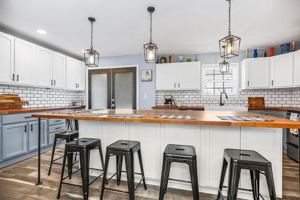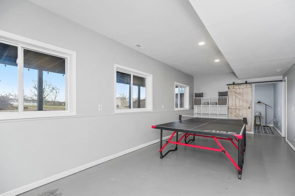 Beautifully updated home offering the perfect blend of modern upgrades, outdoor living, and functional space inside and out! The exterior has been thoughtfully transformed with a newly manicured gravel driveway, extensive rock landscaping, fresh paint on doors, shutters, and garage door, plus sanded and stained wood beams on the front porch. Enjoy outdoor living with a new firepit area, upgraded Deckorators composite decking and railing, and a saltwater pool with custom drainage system—ideal for relaxing or entertaining. Located within walking distance to a nature trail near Clinton Lake, this property offers both privacy and outdoor adventure. Inside, the home features a fully repainted interior, new LVP flooring on the main level, and brand-new carpet upstairs. The kitchen is a showstopper with a huge 40 sq ft island, added cabinetry, butcher block countertops, new sink, and updated lighting throughout. Additional updates include re-screened windows, new stair treads and railing, and updated lighting with dimmer switches. The finished basement offers additional living space with an updated full bath and remodeled stairs and railing. Barnboard accents in the dining room and half bath add warmth and character. The barn offers incredible versatility with a new concrete floor, added second level, electric on both floors, painted rafters, and framed workspace. Concrete has also been poured under the overhang for a future three-season room near the pool.