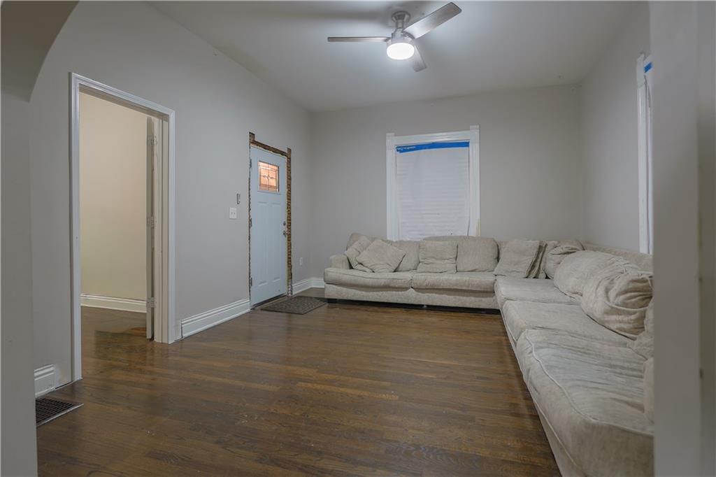 Charming 3-bedroom, 1-bath bungalow situated on a spacious double lot in a prime downtown location! This home features a welcoming front porch with classic stone columns, perfect for relaxing evenings. Inside you’ll find beautiful hardwood floors and timeless character throughout. The detached garage provides additional storage or workshop space. Upstairs offers incredible potential with sheetrock already completed — allowing for an additional 400–500 square feet of finished living space with just a little more work. Located just steps from the park and walking trails, this home combines location, charm, and opportunity. With a few finishing touches, you can truly make it your own!
