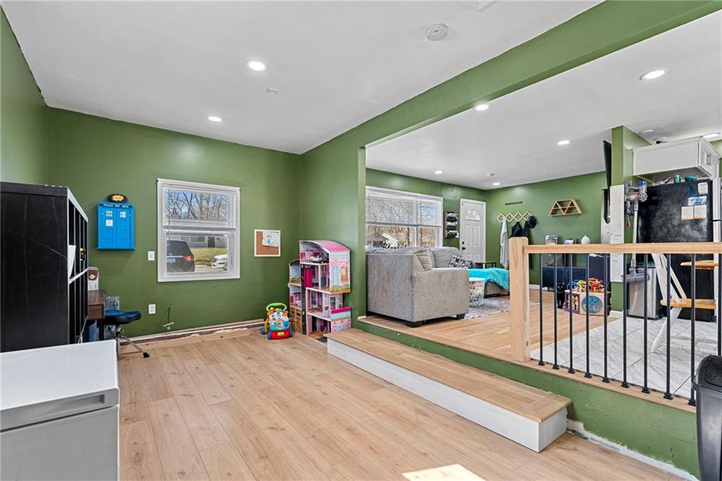 Welcome home to this bright, cheerful, and move-in ready ranch in South Kansas City! This inviting 3-bedroom, 1-bath home with a full basement offers comfort, convenience, and plenty of room to grow. Step inside to find nice wood flooring throughout and a bright, tiled, well set up kitchen with great cabinets and counter tops that makes everyday living and entertaining easy. The vinyl windows fill the home with natural light, creating a warm and welcoming atmosphere in every room. A main-level laundry area conveniently located in the converted rec room adds everyday practicality. Downstairs, the full basement provides endless possibilities whether you're dreaming of a finished living space, workshop, hobby area, or simply extra storage. You'll also appreciate the solid, dry foundation and the added security of a concrete storm room complete with lighting and electrical outlets. Out back, unwind on the deck overlooking your private fenced backyard, which backs to peaceful green space perfect for relaxing summer evenings, pets, or gatherings with friends and family. With easy highway access, commuting around Kansas City is a breeze. Plus, enjoy peace of mind with a roof and furnace that are just over a year old! This home truly offers comfort, charm, and room to make it your own. Schedule your showing today!