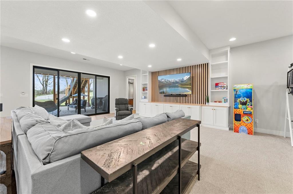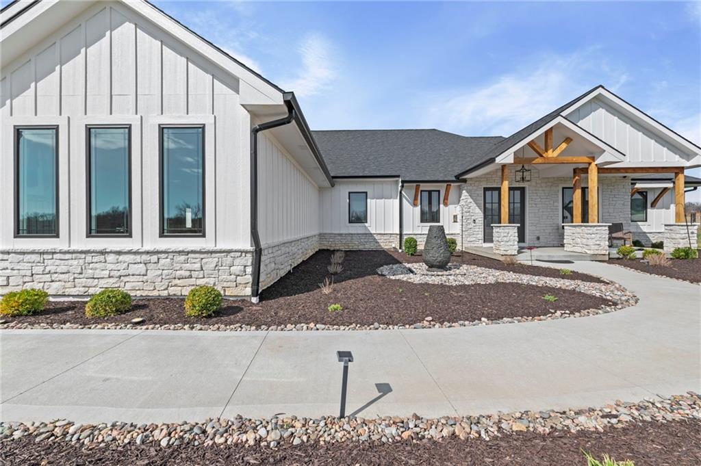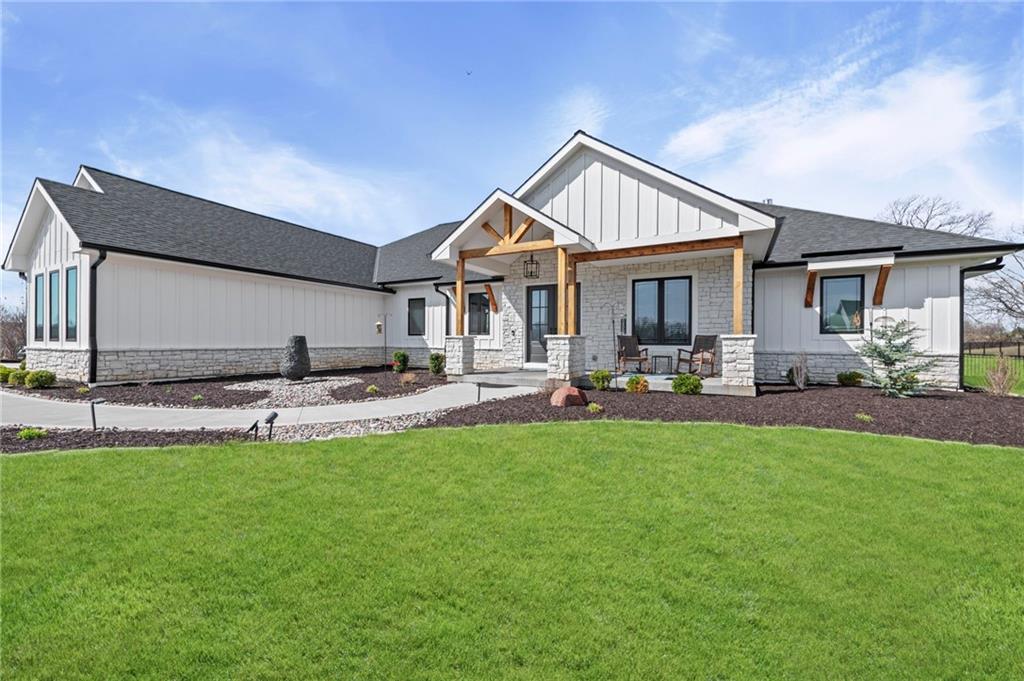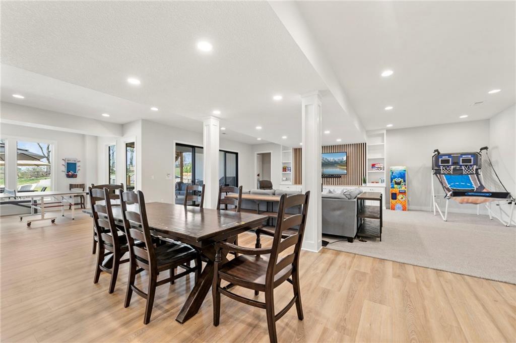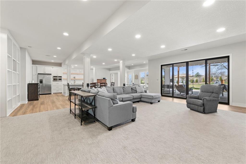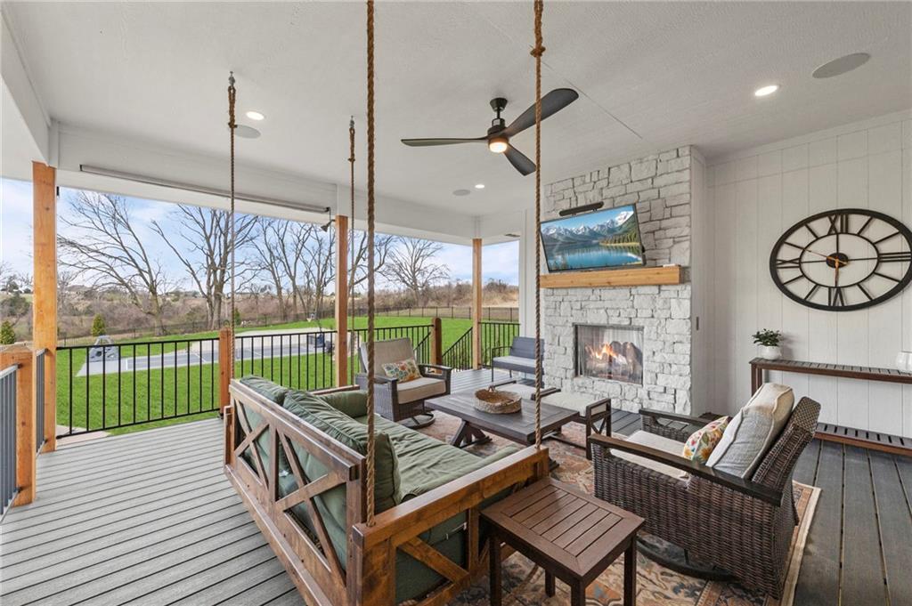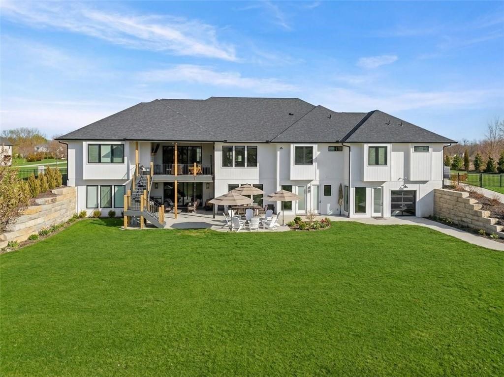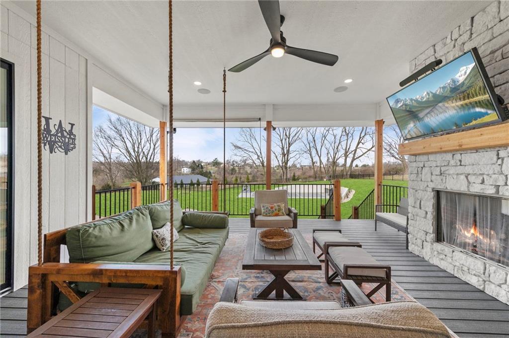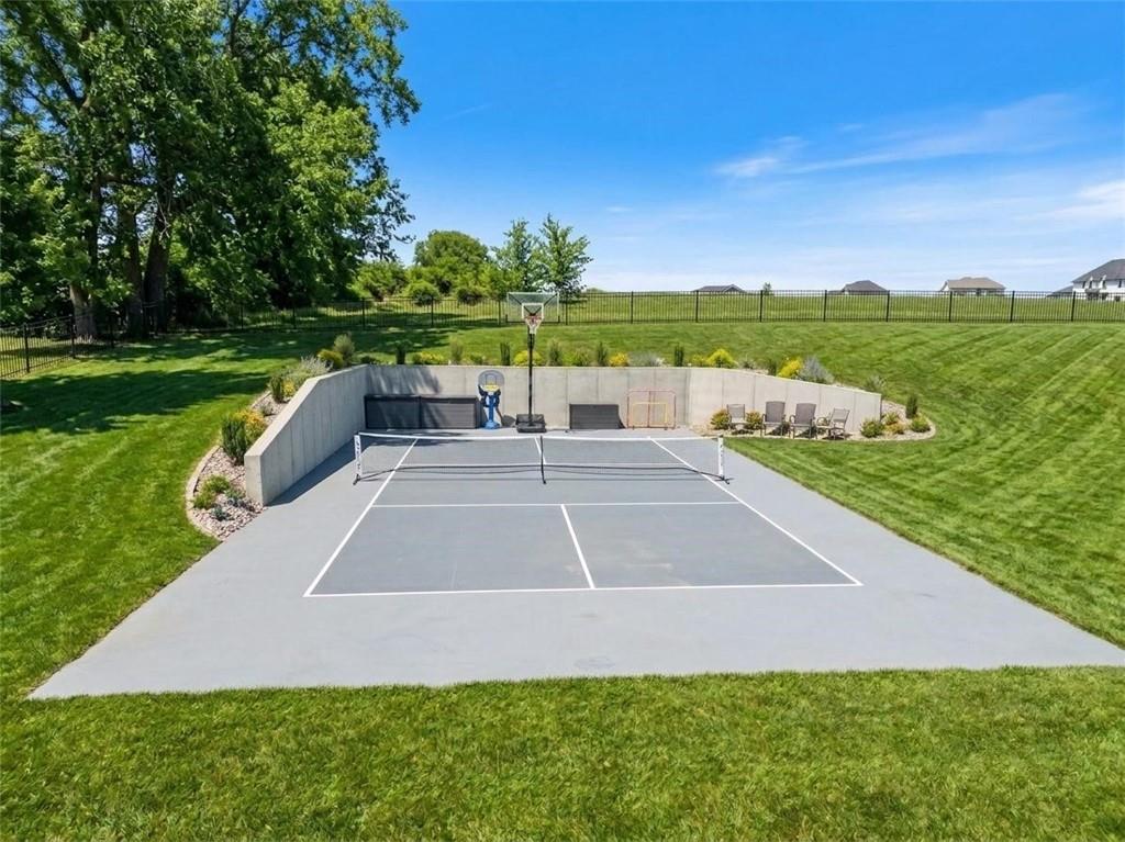 YOU HAD ME AT PICKLEBALL !!! TRUE RANCH w/ "5 BEDROOMS" ON THE MAIN LEVEL + OFFICE = 3300 + sq ft w/ over 6500 sq ft total sits on 1.5 acres! ENJOY your own PICKLEBALL/SPORT COURT & FLAT BACKYARD!!! THIS ESTATE HOME WAS CUSTOM DESIGNED FOR A BUILDER'S FAMILY. Park Hill South High School. Amazing 360 degree views as this homesite is a higher elevation, which adds privacy. Winding driveway with large turnaround area takes you to the side entry 3 car garage. Double Entry 8 ft doors into the main foyer with office close by. The towering stone fireplace & cathedral beamed ceiling in the great room adds a grand effect. White oak floors lead to the open Gourmet kitchen w/ magnificent island, Quartz countertops and painted cabinets. The Butler's Pantry has many extras including, cabinets, shelving, microwave, beverage fridge AND water bottle filler! Sliding doors to the covered deck has a NEW fireplace for those cozy evenings to enjoy sports or movie. Stairs go down to the wondferful patio. You will love the drop space & laundry room combination between the garage & kitchen. AMAZING space! The primary suite includes a fireplace with beautiful stone floor to ceiling accent. Primary bath is everything you could want, walk in shower, double vanity, heated tile floor and tub! Memories galore in the LL recreation room w/ 2nd kitchen/ bar area. Ping pong / pool table space in the family room. Plenty of space to work or play with the exercise room which opens up with a garage door to the magnificent backyard. The 6th bedroom suite in the lower level is private and quiet! There is another 1/2 bath on the Lower Level conveniently located in case there is a pool in the future ! This is a Unique and well designed Estate home ... so many opportunities w/ the backyard and outdoor living spaces. Beautiful sunsets await !